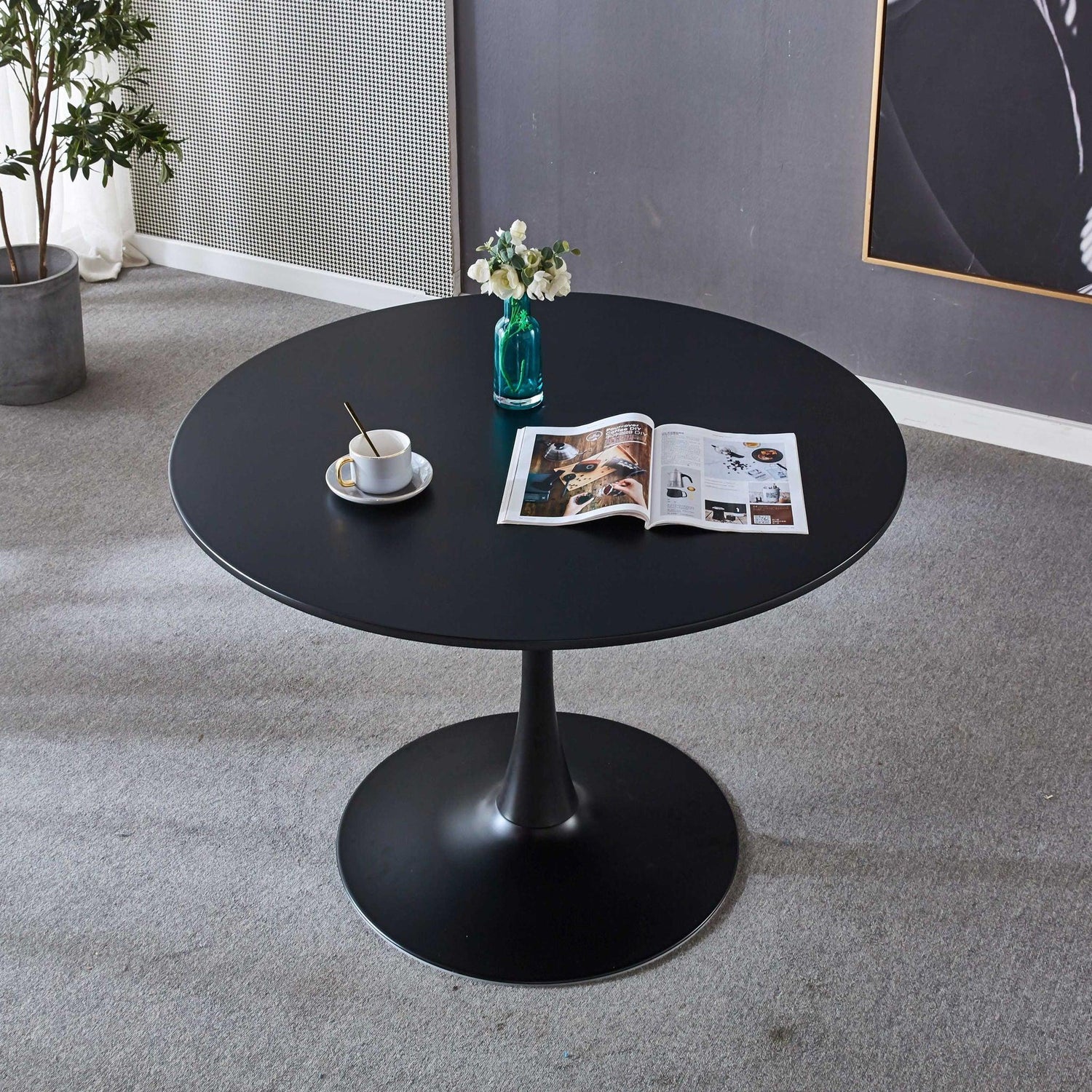 Tulip Table Mid-Century Dining Table For 4-6 People With Round MDF Table Top, Pedestal Dining Table, End Table Leisure Coffee Table - Black