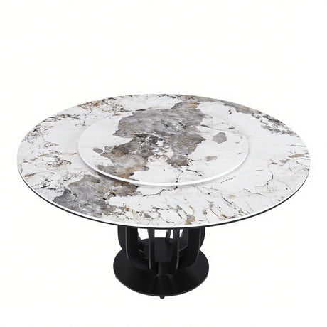 Round Dining Table With Carbon Steel Base And Lazy Susan Industrial Style - Black / White