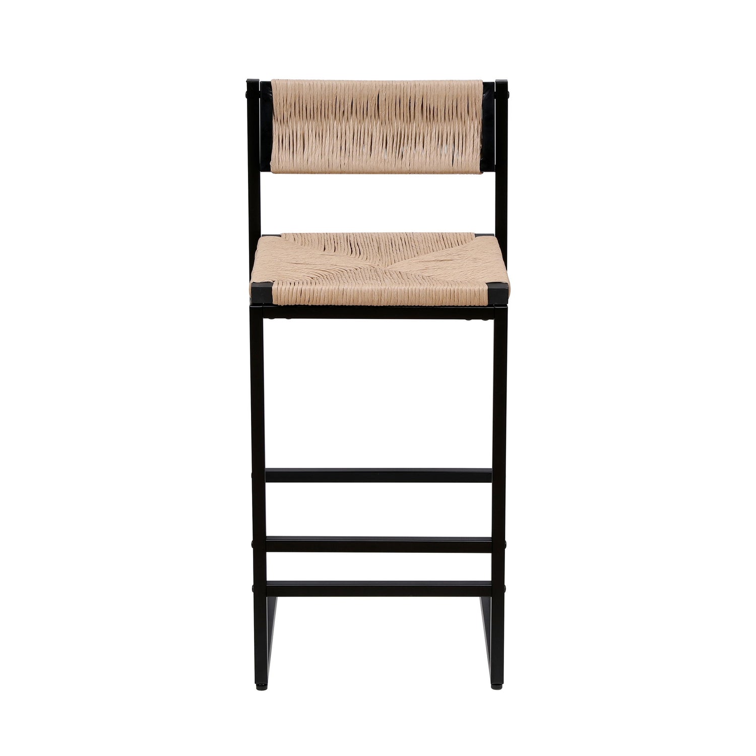 Bar Stools Paper Rope Weave Dining Chairs With Back Hand Weave Stools For Kichen Island, Bar & Counter (Set of 2)