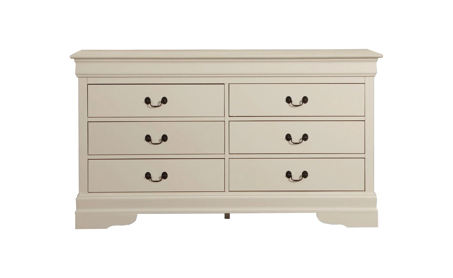 Built for daily use, the dresser pairs English-dovetailed drawers and metal center guides with positive stops to combine smooth operation and long-term strength. Antique-style metal bail pulls and tarnish-resistant hardware complete the traditional look while keeping maintenance simple. The clean proportions and substantial top also make it a practical surface for lamps, décor or a dressing tray.