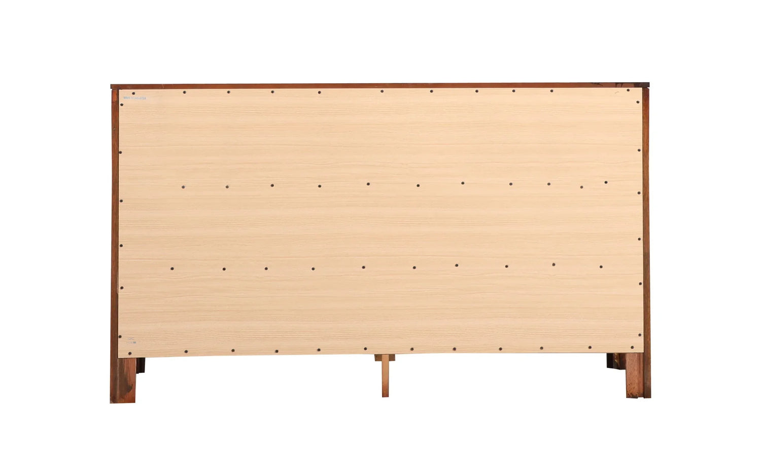 Constructed with time-tested joinery for long-term durability. For stability, place the dresser on a level floor and secure it to the wall with anti-tip hardware where provided or recommended—this reduces risk if children climb or if the unit is placed on an uneven surface. Natural finish and grain will vary from piece to piece.