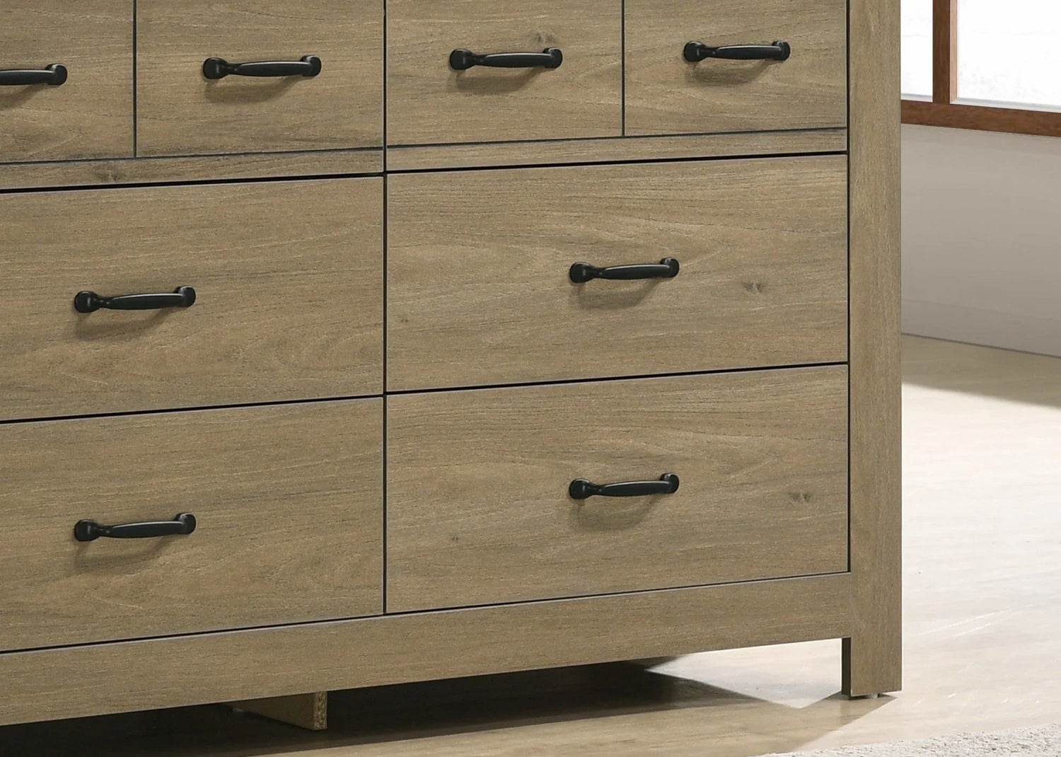 Finn - Oak Finish Dresser With 6 Drawers And Black Handles - Coffee Gray