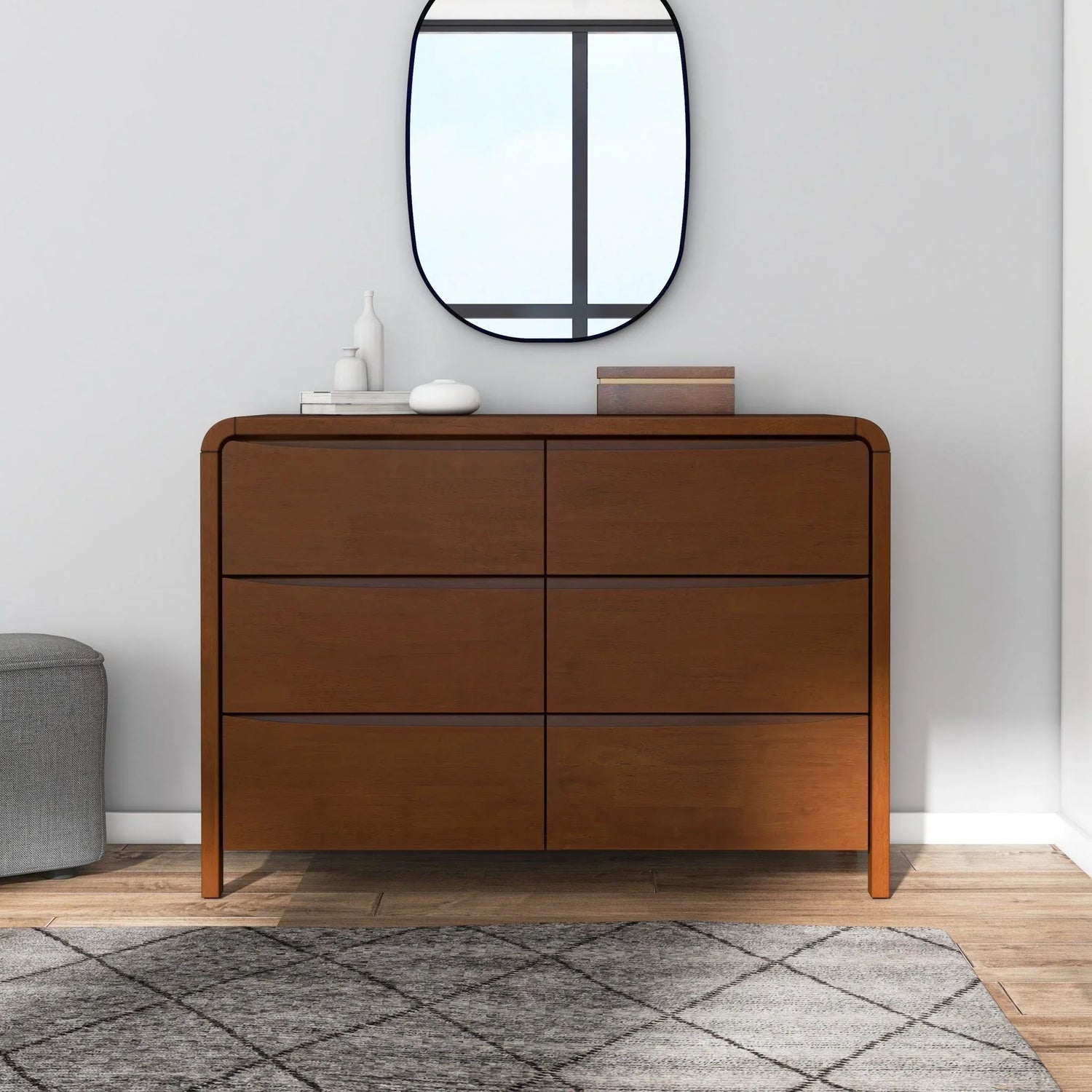 Lionel - Mid-Century Modern Solid Wood 6 Drawer Dresser - Brown