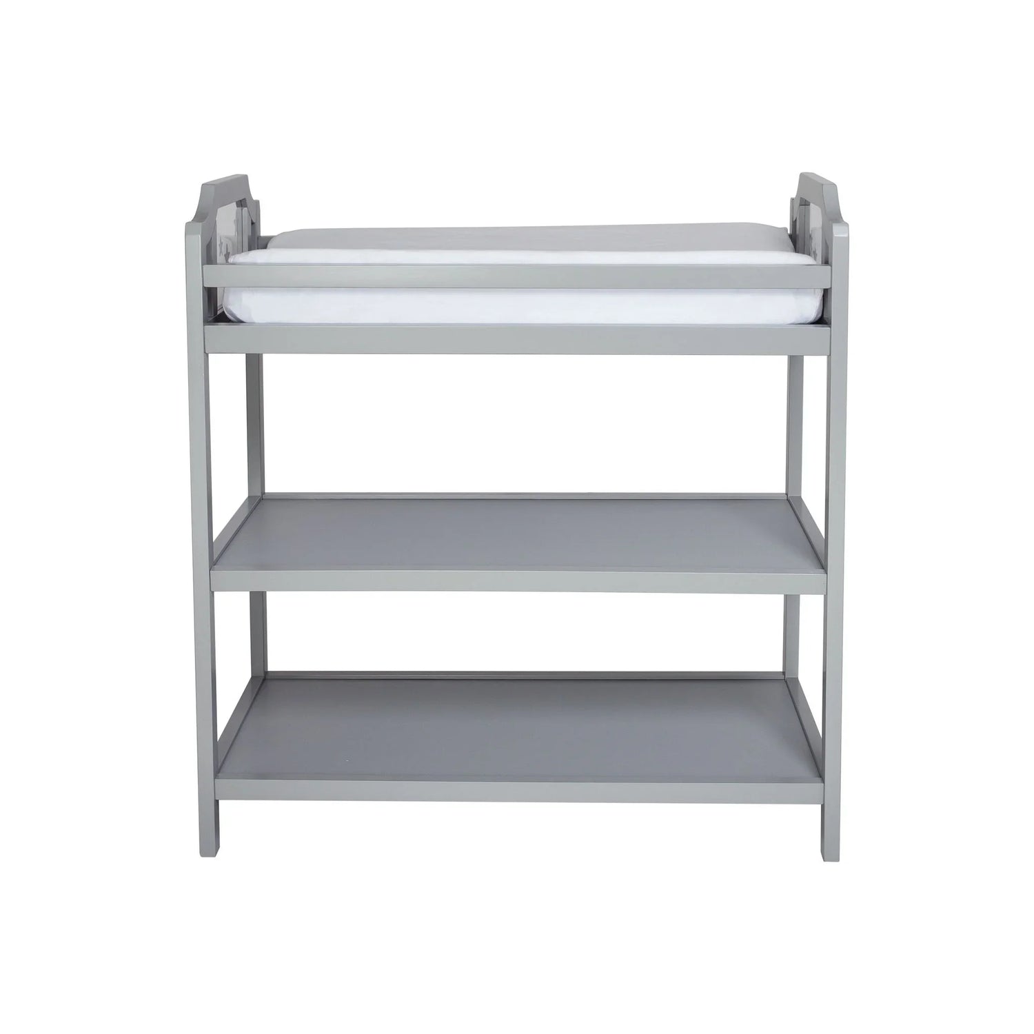 • Practical organization: Two full-width shelves provide easy access to diapers, clothes and baskets during changes.
