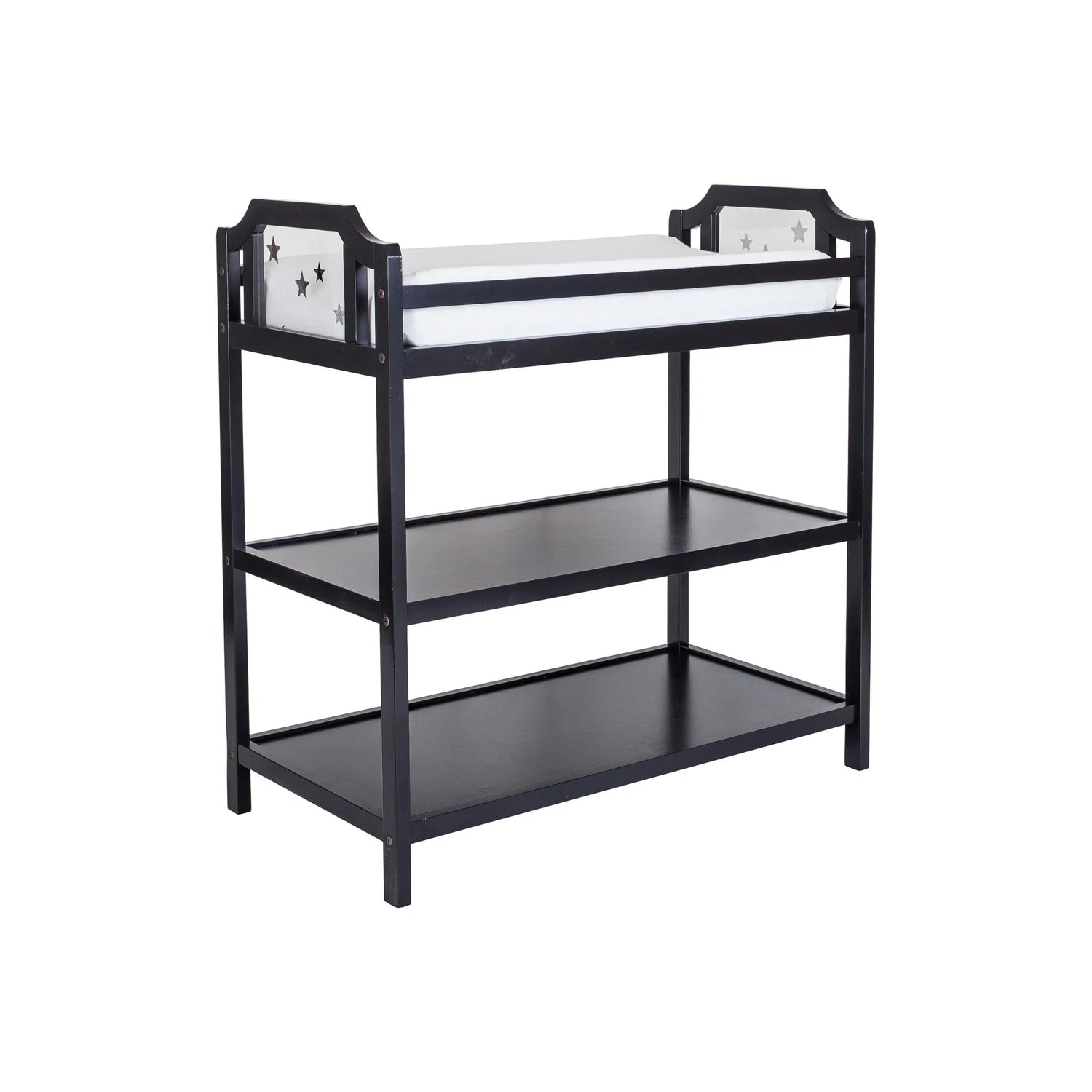 Storage: Two open shelves beneath the changing top for folded linens, diapers and storage baskets.
