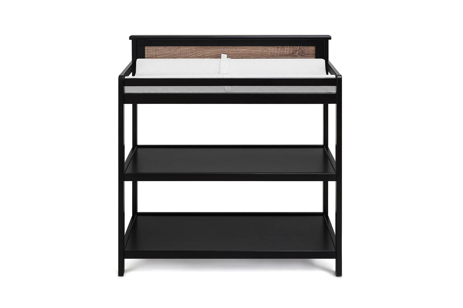 Thoughtfully built for everyday use, the Connelly places safety and organization front and center: raised safety rails on all four sides help keep baby secure during changes, while two open shelves provide easy‑reach storage for diapers, wipes, lotions and folded linens. Constructed from wood materials and finished for easy cleaning, it’s a no‑fuss piece that blends function with subtle design detail.