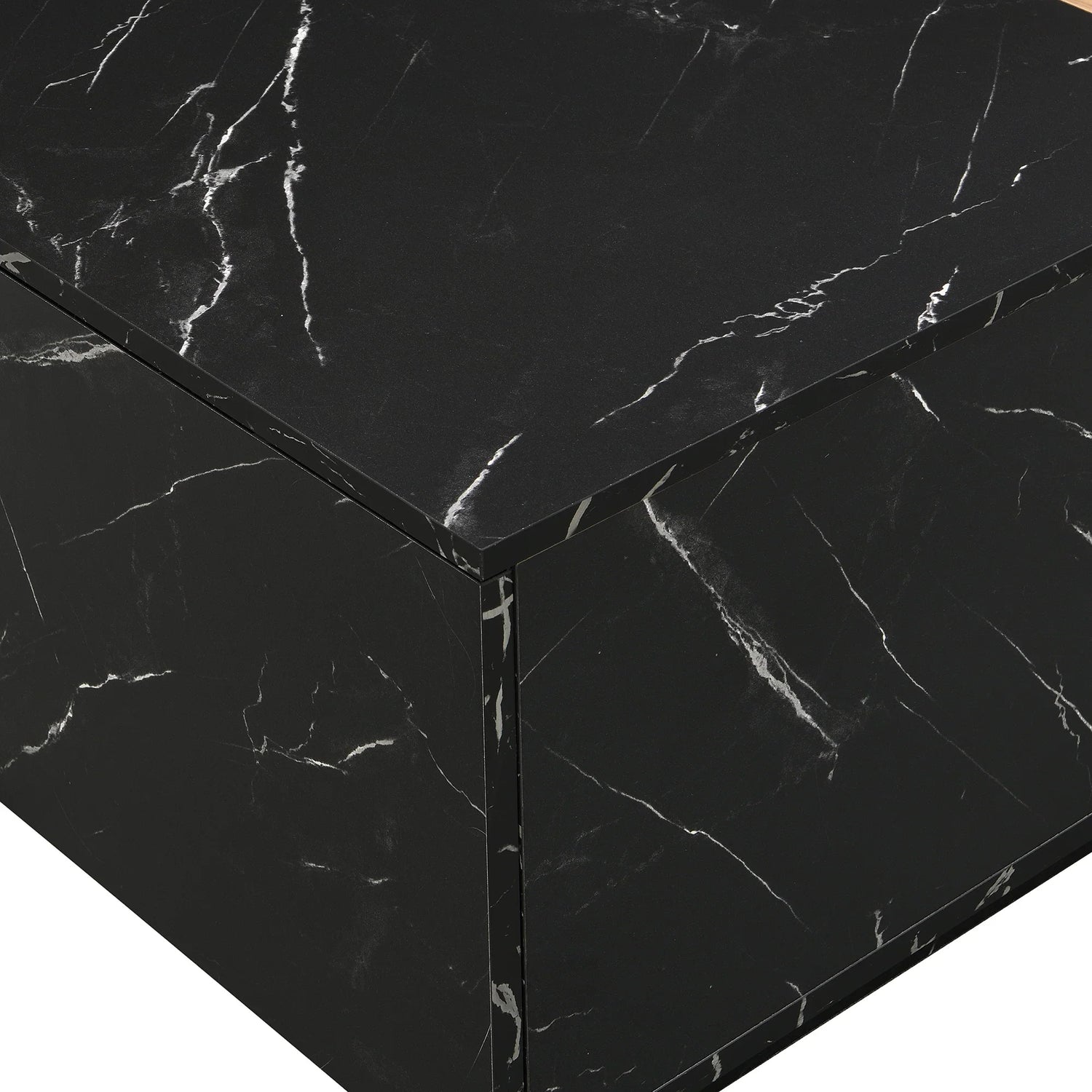 - High-style finish: Black faux-marble veneer with a wood-accent panel creates a luxe, furniture-forward look without the maintenance of real stone.