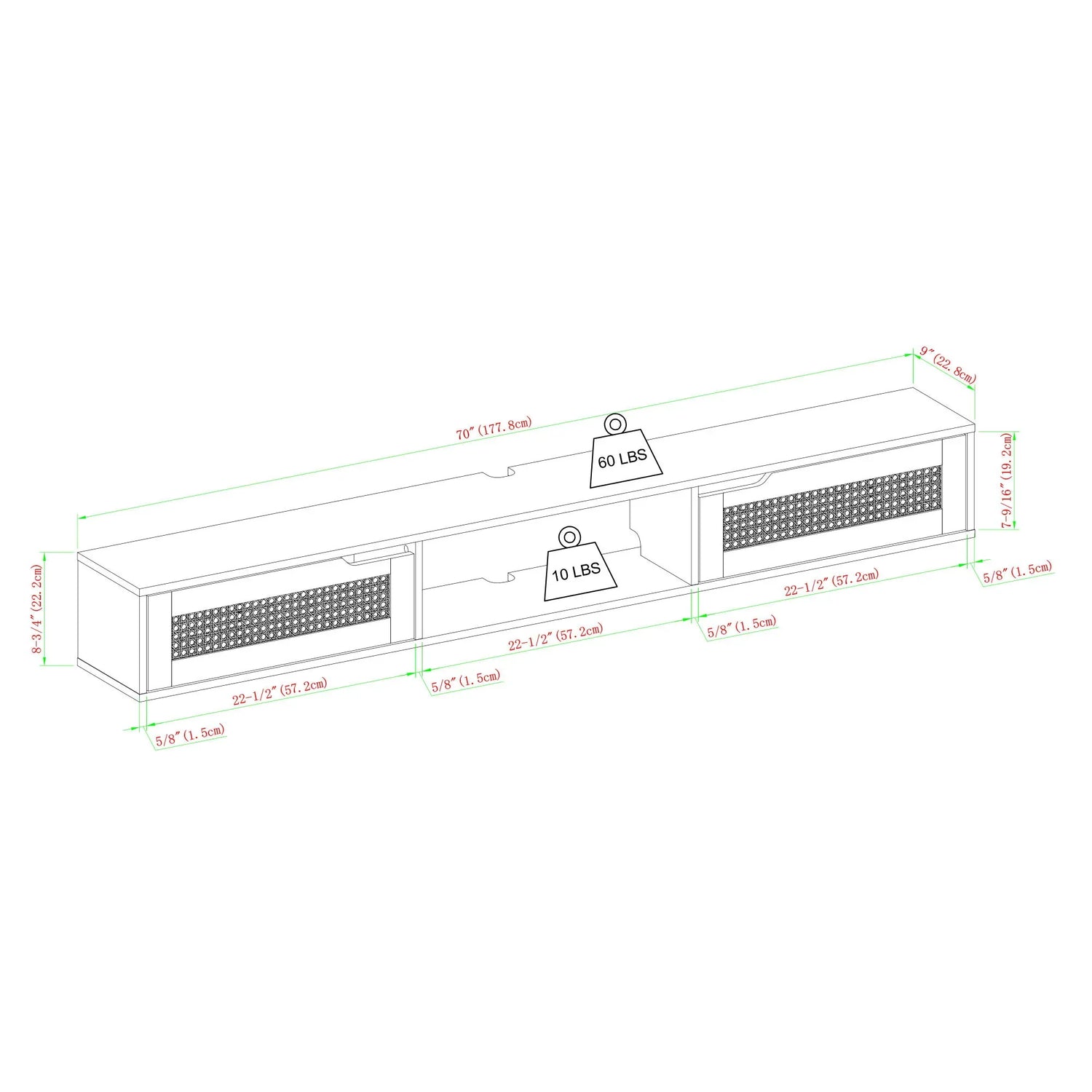 Modern Rattan Door Floating TV Stand For TVs Up To 80"