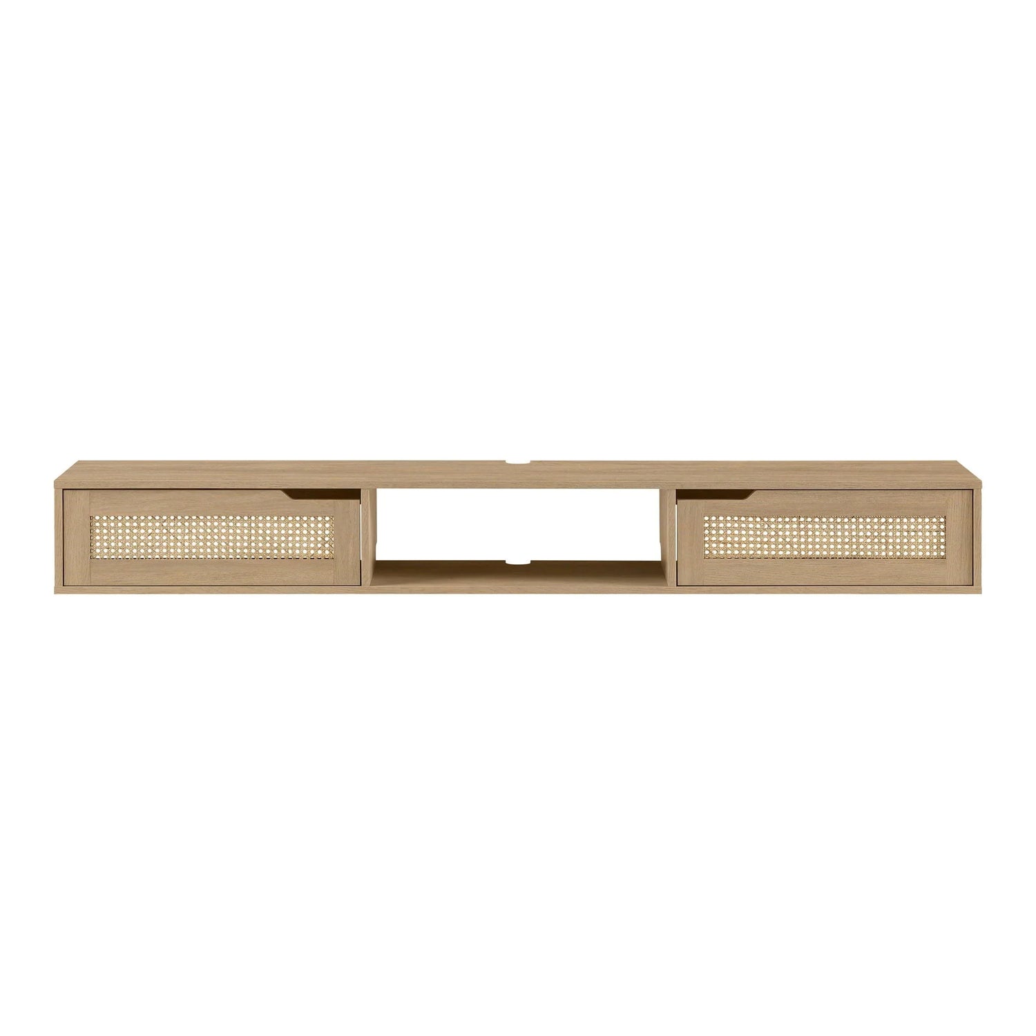 Modern Rattan Door Floating TV Stand For TVs Up To 80" - Coastal Oak
