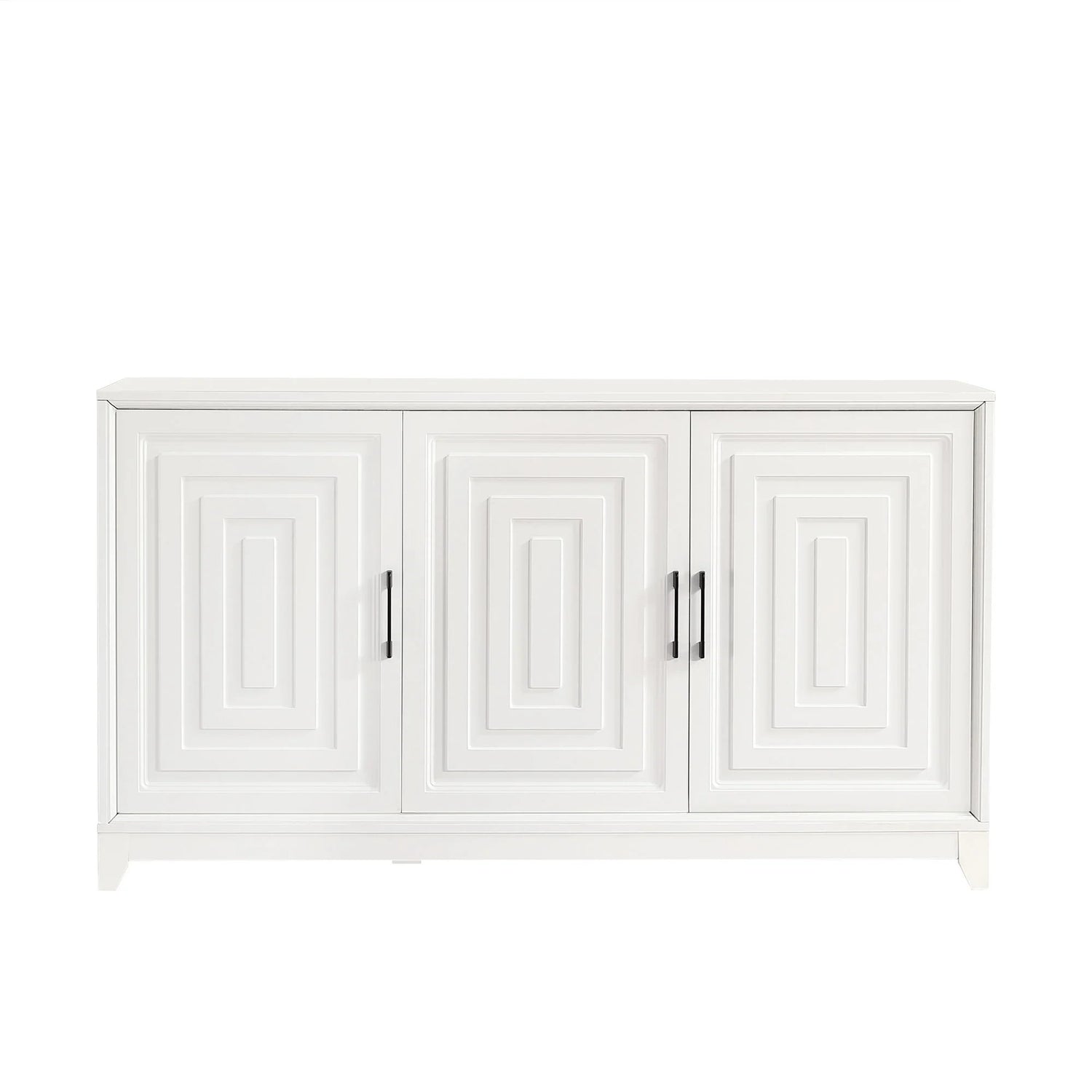 • Stylish and Sturdy: The cabinet boasts geometric doors with sleek metal handles for a functional and stylish touch. Supported by solid wood legs, it can hold a large TV and media equipment securely.