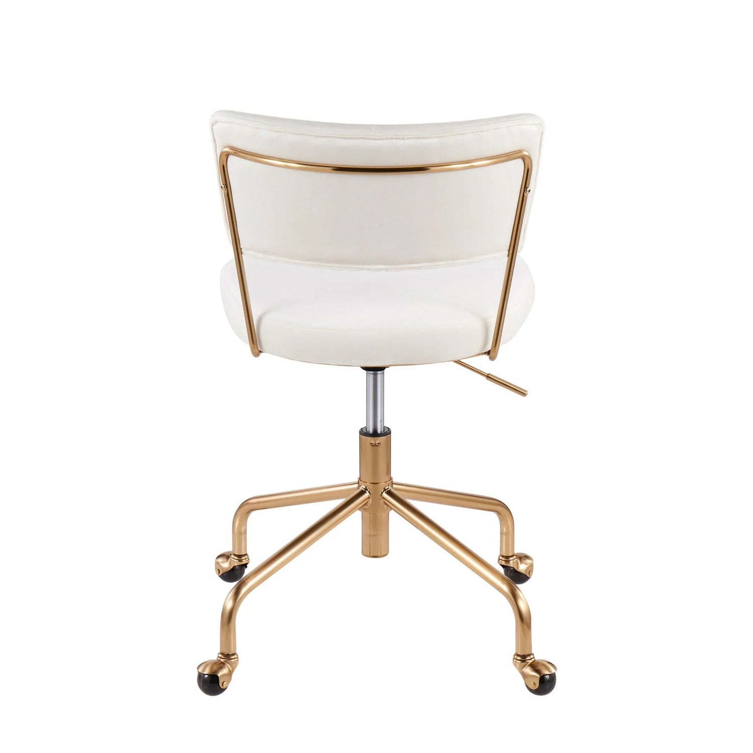 - Modern Design: The LumiSource Tania Task Chair boasts a chic and fabulous design, perfect for modern office spaces. Its contemporary styling combines a unique metal frame with a luxurious velvet upholstery, available in various colors to complement any room.