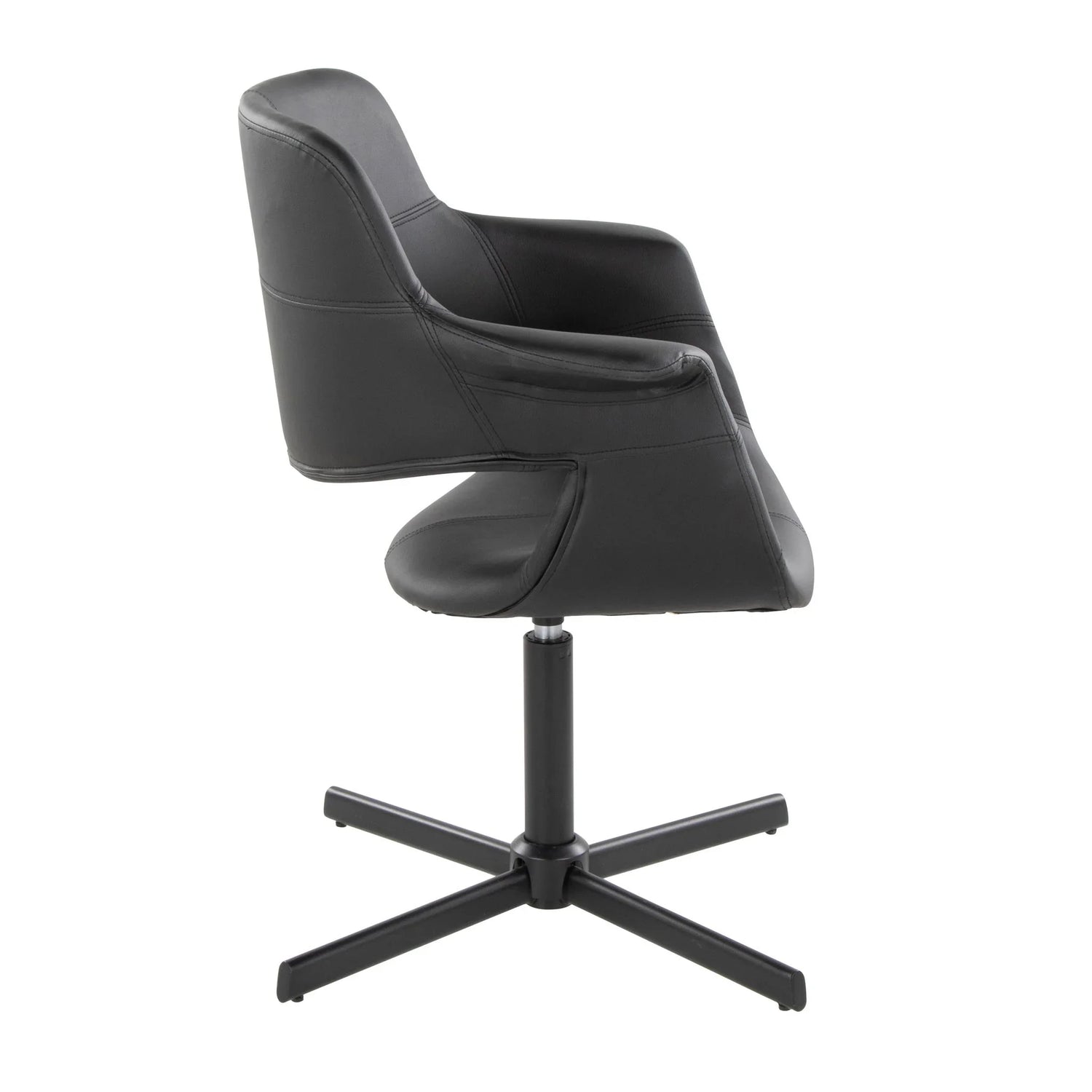 - Comfort Features: Designed for comfort, the chair features padded seat and backrest, along with armrests. Upholstered in stylish faux leather, it offers both elegance and support.