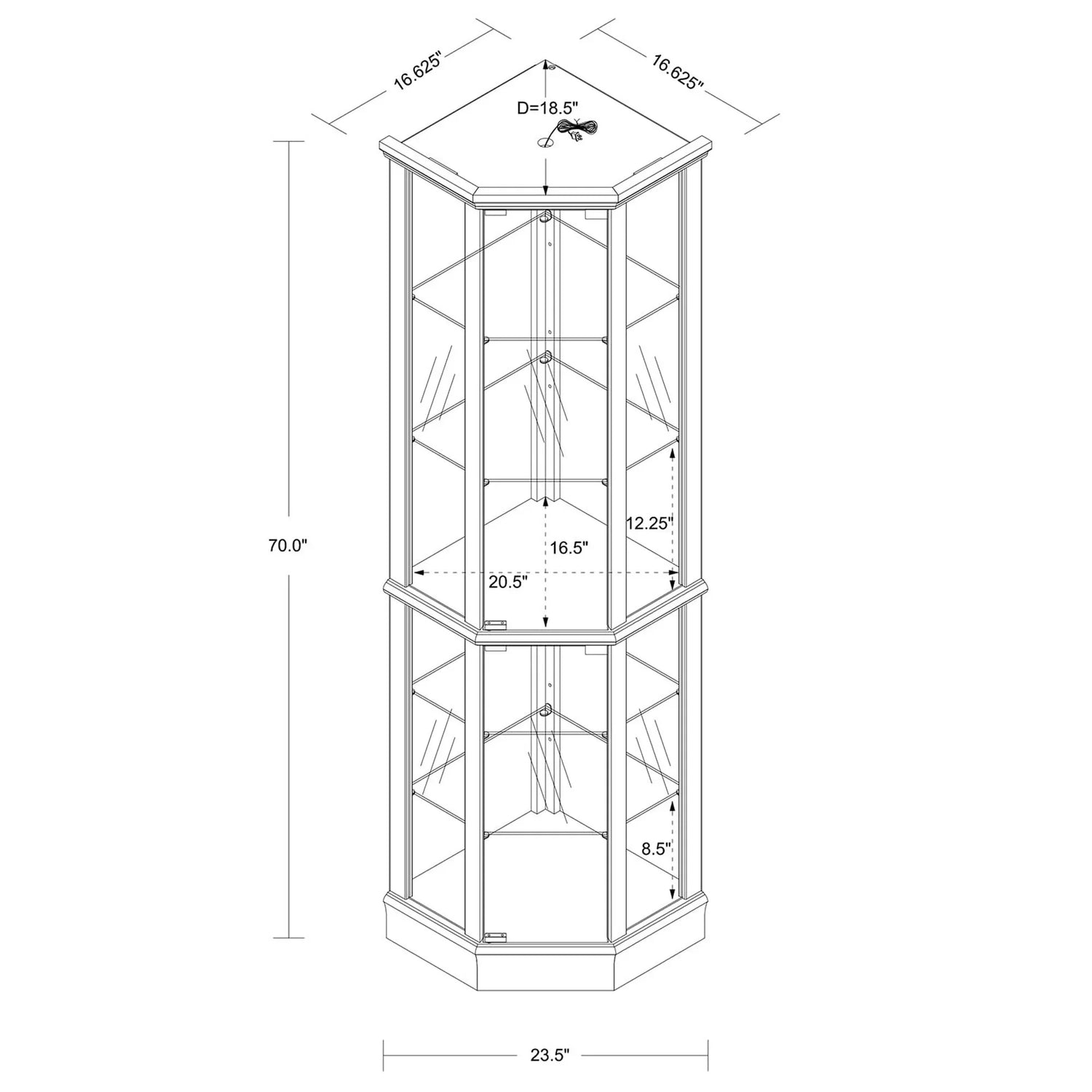 - Mirrored Back Panel: The cabinet features a full-height mirrored back panel for optimal display of collectibles from any room angle.