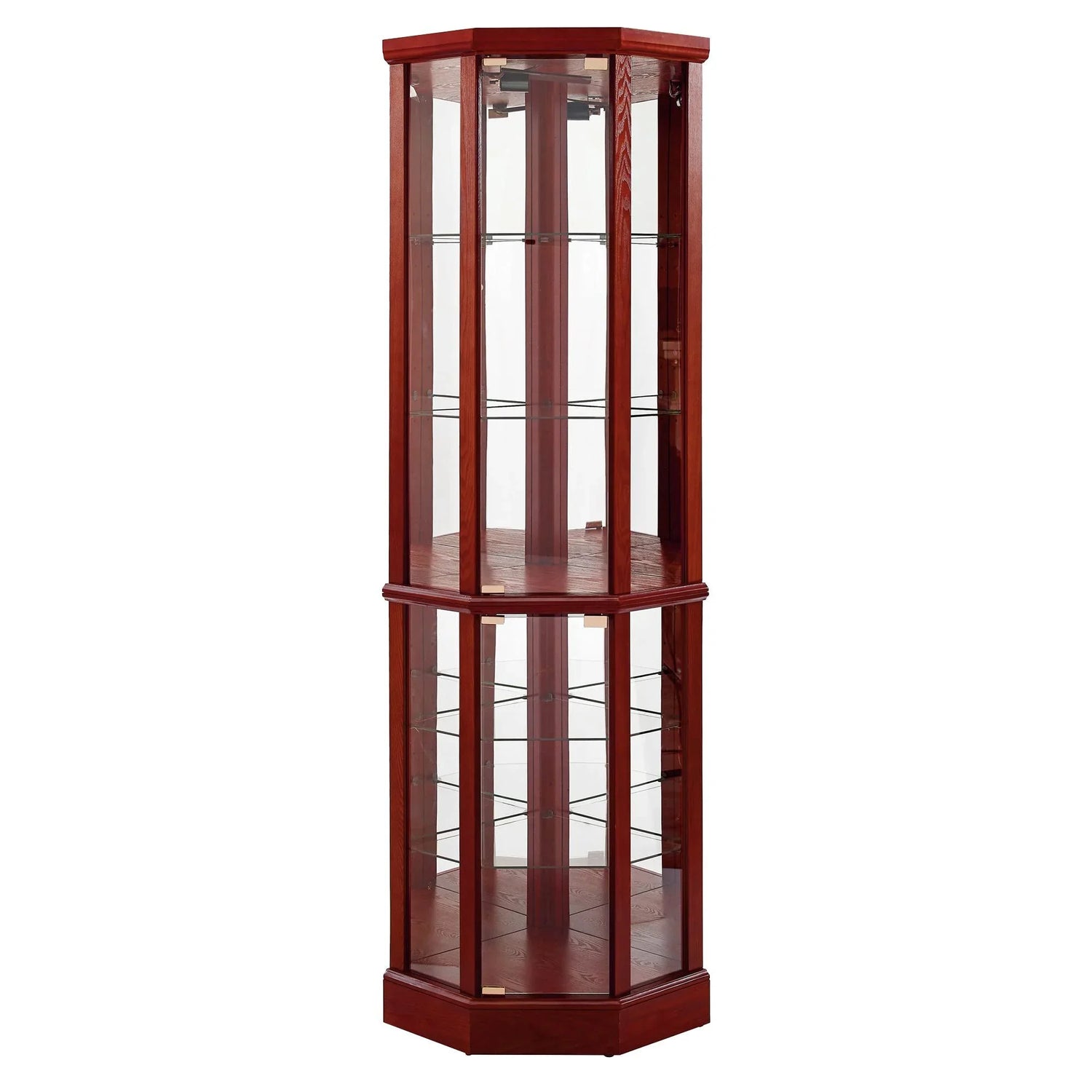 6 Shelf Lighted Corner Curio Cabinet With Adjustable Tempered Glass Shelves And Mirror Back (E26 Light Bulb Not Included) - Cherry