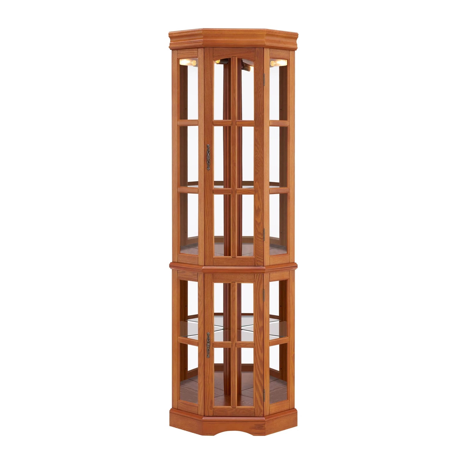 Corner Curio Cabinet With 5 Shelves And Lighting System (E26 Light Bulb Not Included) - Oak