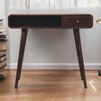 • Curved Writing Desk - Introducing our stylish Writing Desk, crafted from solid mango wood. It's sustainably sourced and comes in a beautiful finish. With one open slot and one drawer, it helps keep your space tidy. One shiny brass knob and and four Nordic-style legs add a touch of elegance. Perfect for work or study, this desk is a functional and attractive addition to your home or office.
