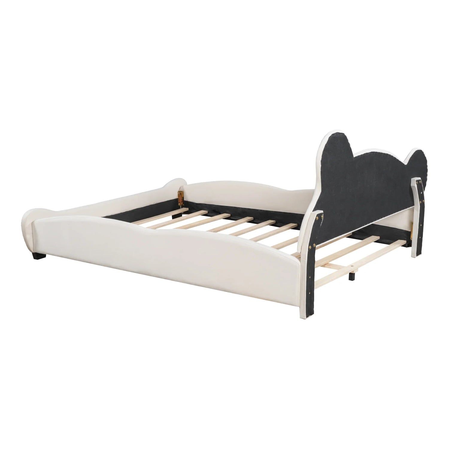 This delightful bear-shaped platform bed adds a whimsical charm to your child’s bedroom. Designed with smooth edges and a robust frame, it ensures a safe and cozy sleep environment. Handy storage pockets at the foot of the bed provide convenient access to bedtime essentials, keeping the space organized. Available in Twin, Full, and Queen sizes and in two lovely colors—beige and Gray—this bed complements any decor. Crafted from premium materials, it guarantees stability and durability for years of comfort and joy.