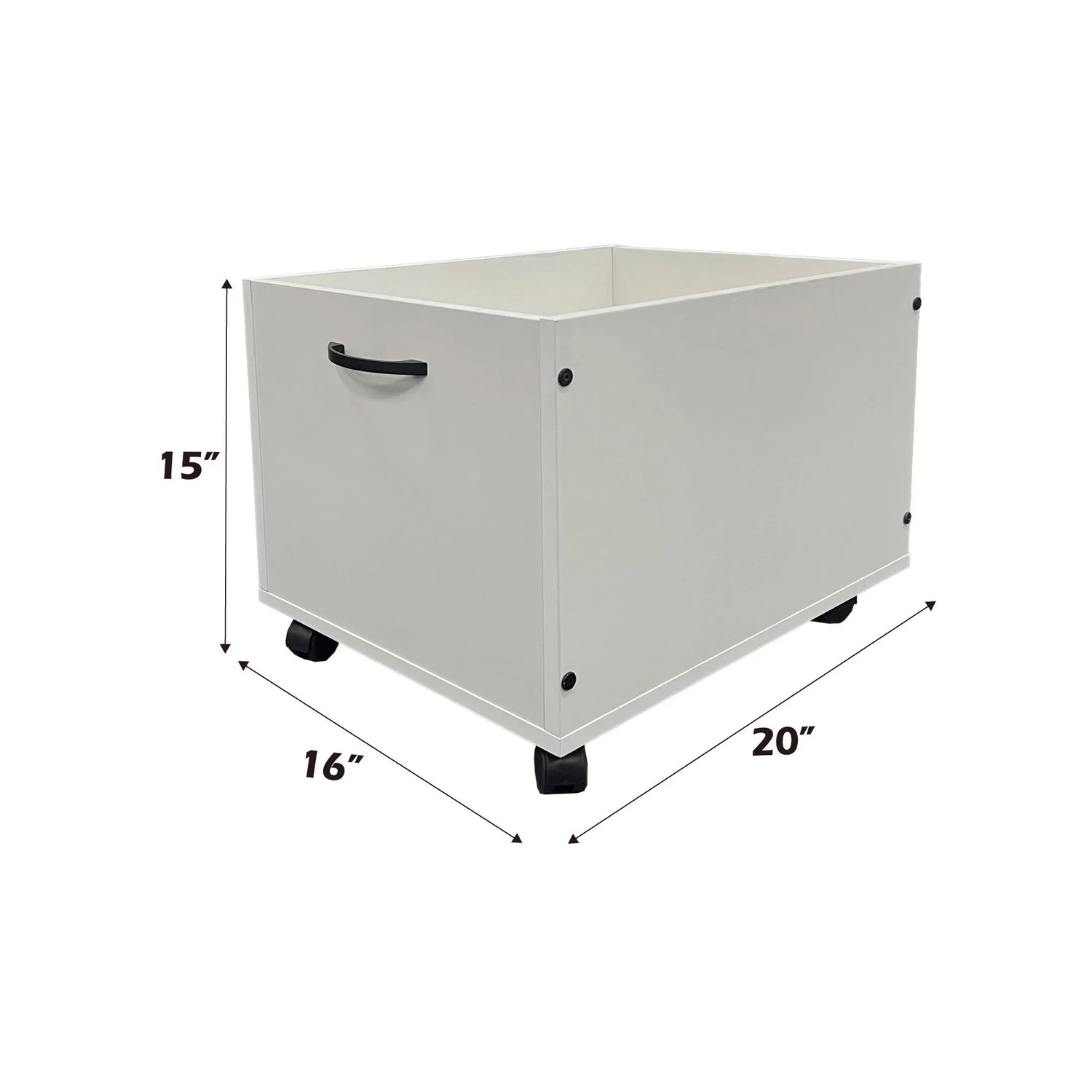 - Convenient Storage Solutions: The set comes with two white-finished toy boxes on wheels, each measuring 16"L x 20"W x 15"H, offering easy mobility and ample storage for toys and essentials.