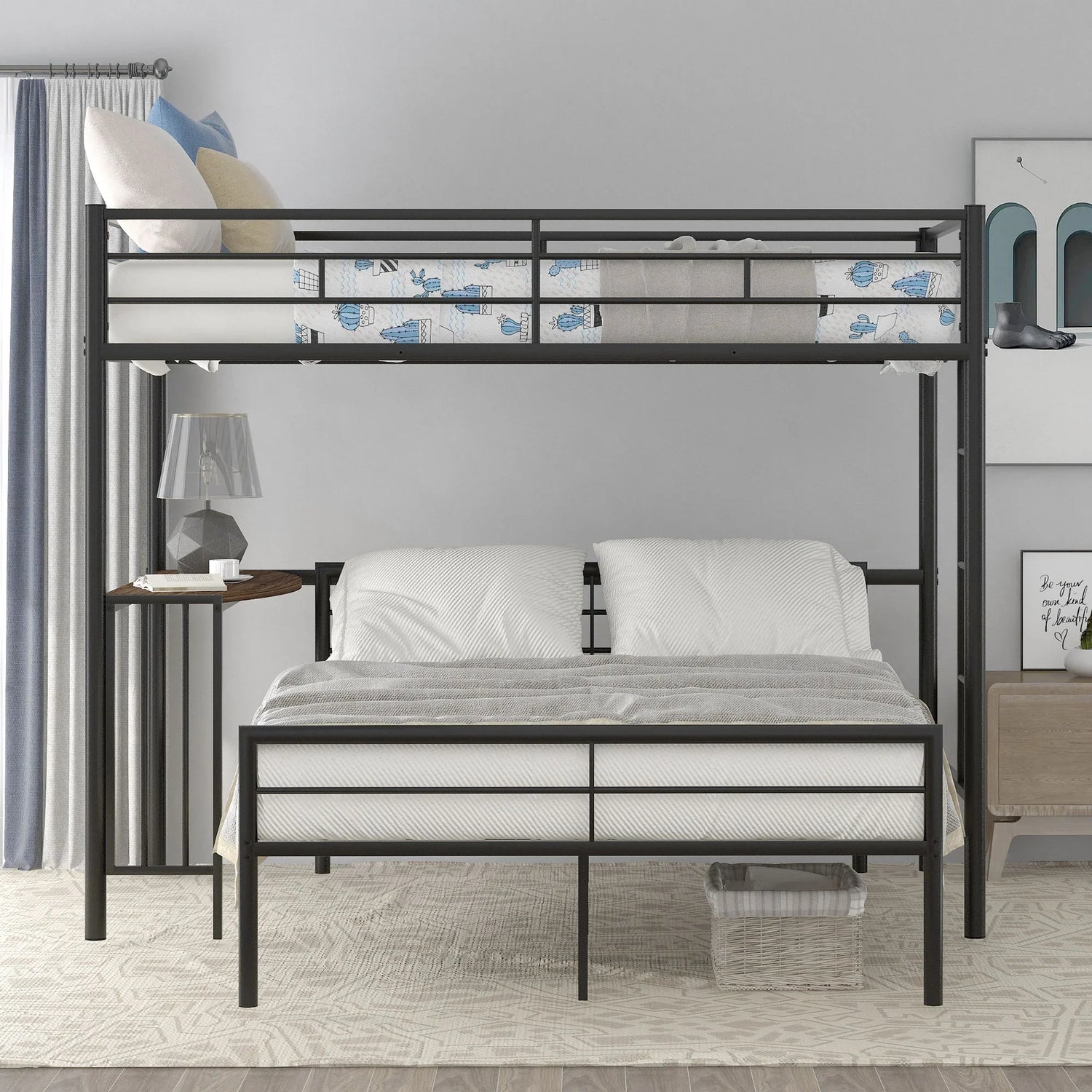 Twin Over Full Metal Bunk Bed With Desk, Ladder And Quality Slats For Bedroom - Metallic Black