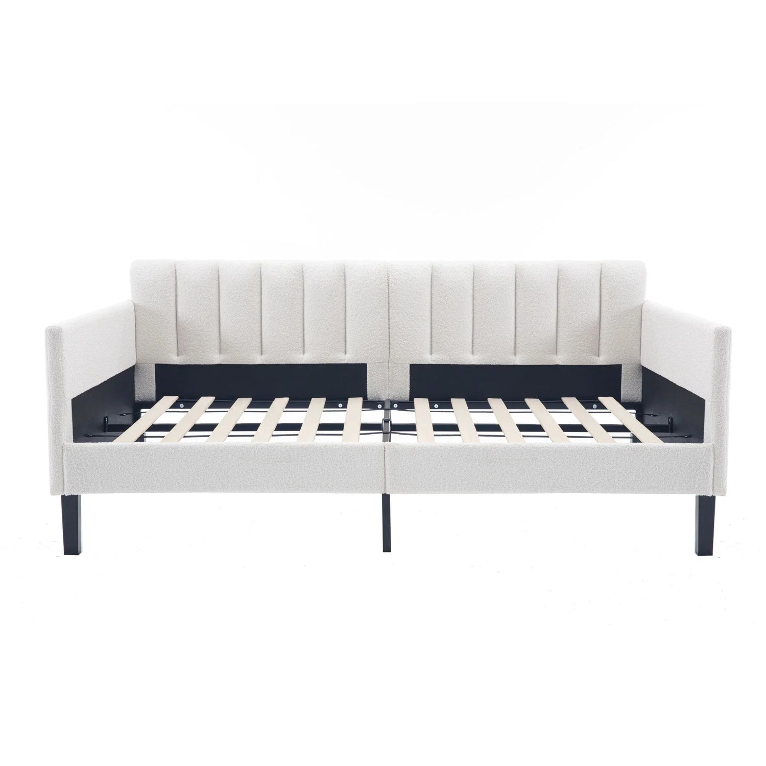 Elena - Boucle Upholstered Daybed, Ribbed Tufted Backrest - White / Twin is backordered and will ship as soon as it is back in stock.