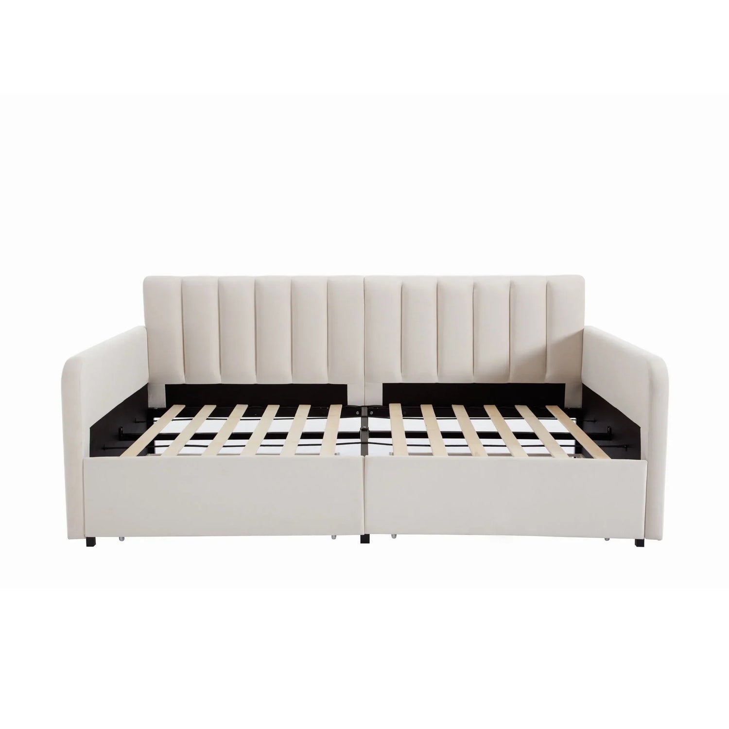 Flora - Upholstered Daybed With 2 Drawers Ribbed Tufted Backrest in Lavish Modern Design