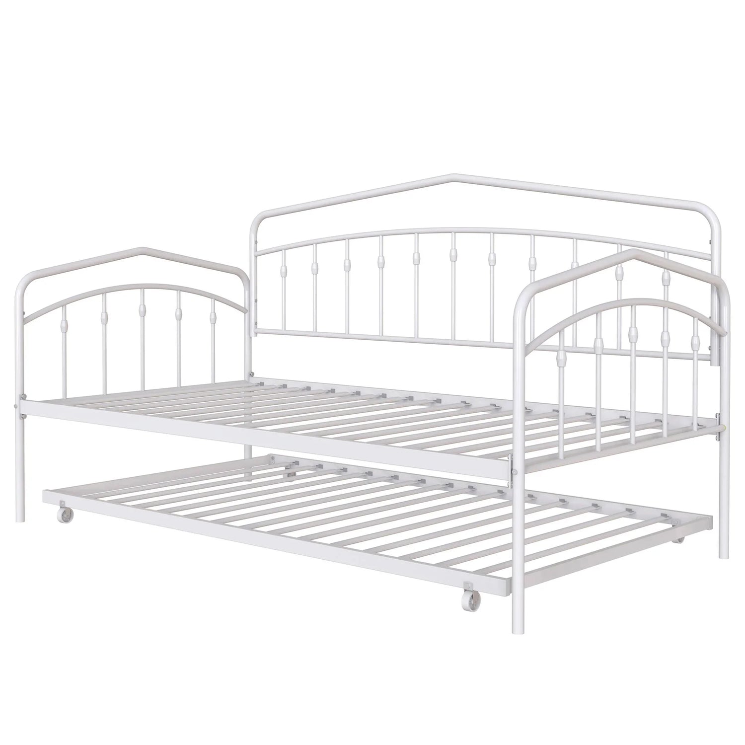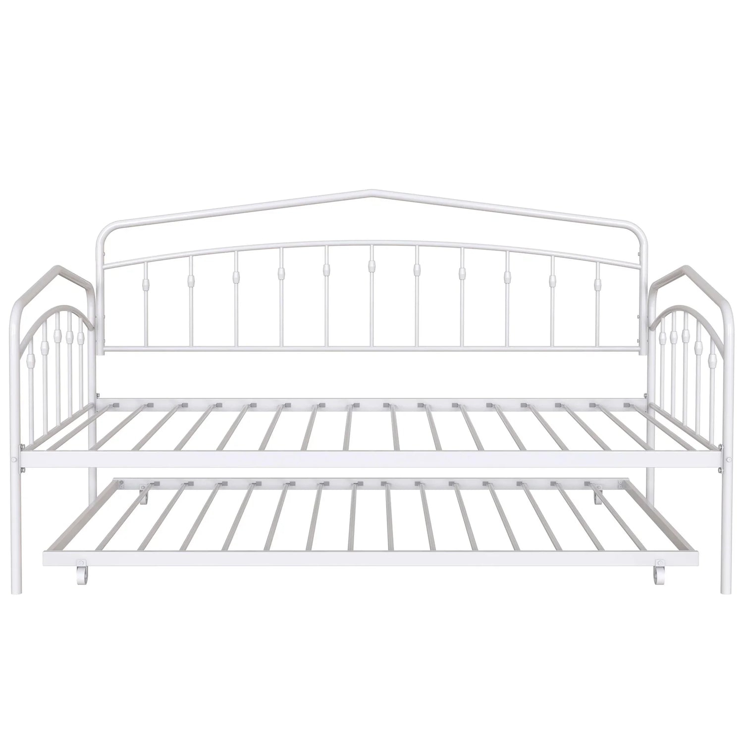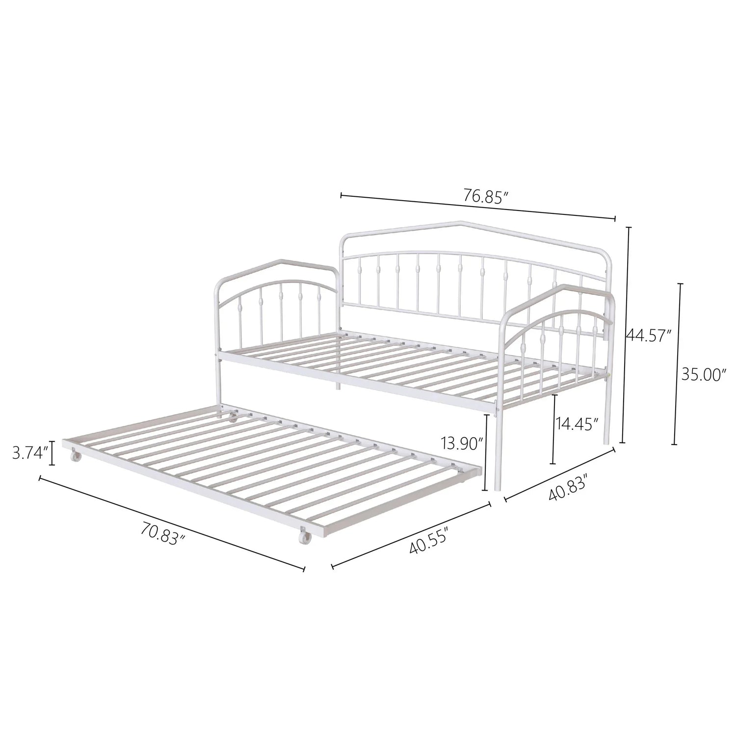 - Durable Metal Frame: Features secured metal slats for support, includes a trundle with easy-glide casters for extra sleeping space.
