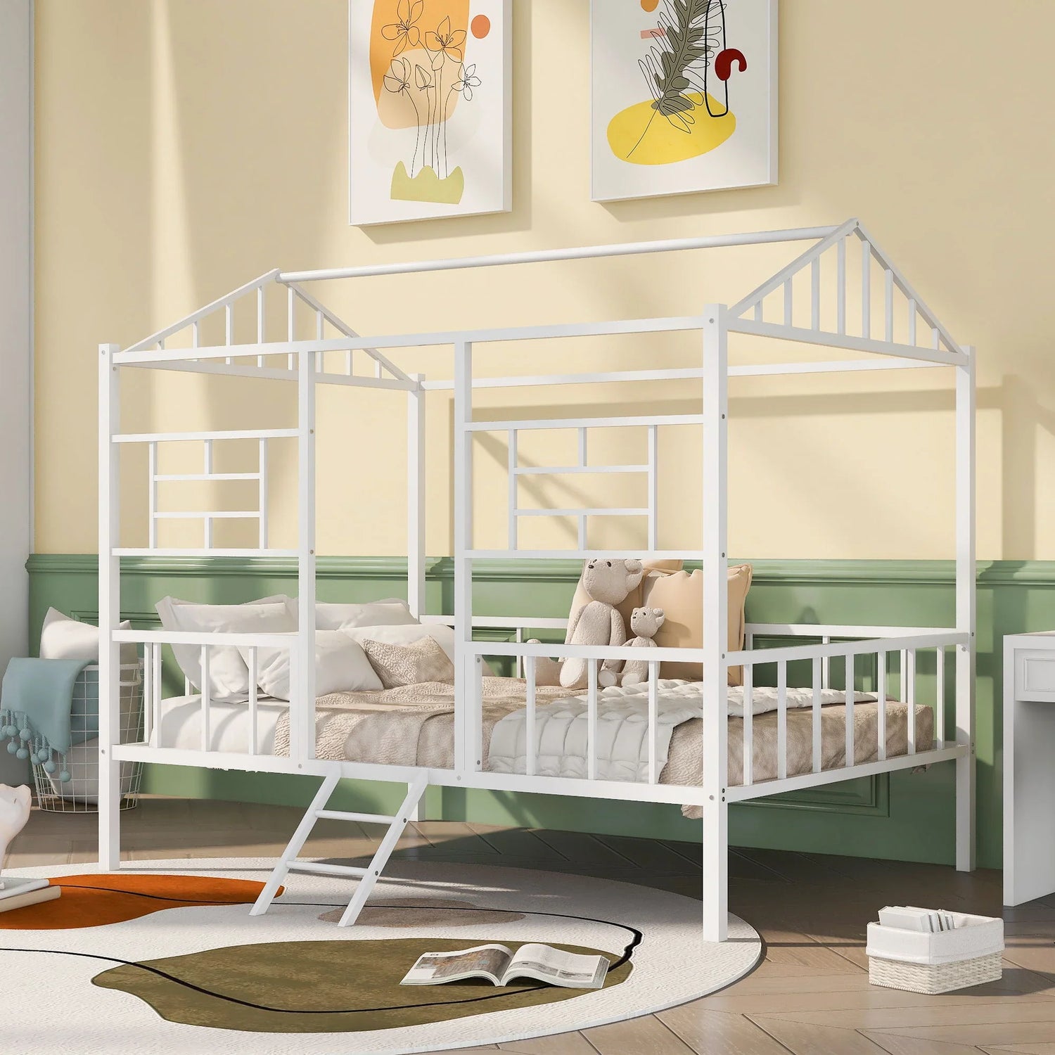 Full Size With Slatted Support, House Bed Frame, No Box Spring Needed - White