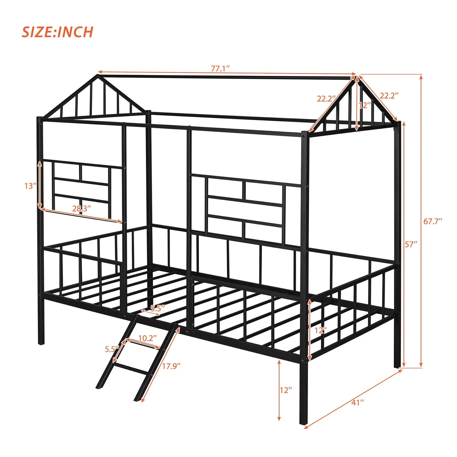 House Bed Frame Twin Size With Slatted Support No Box Spring Needed - Black
