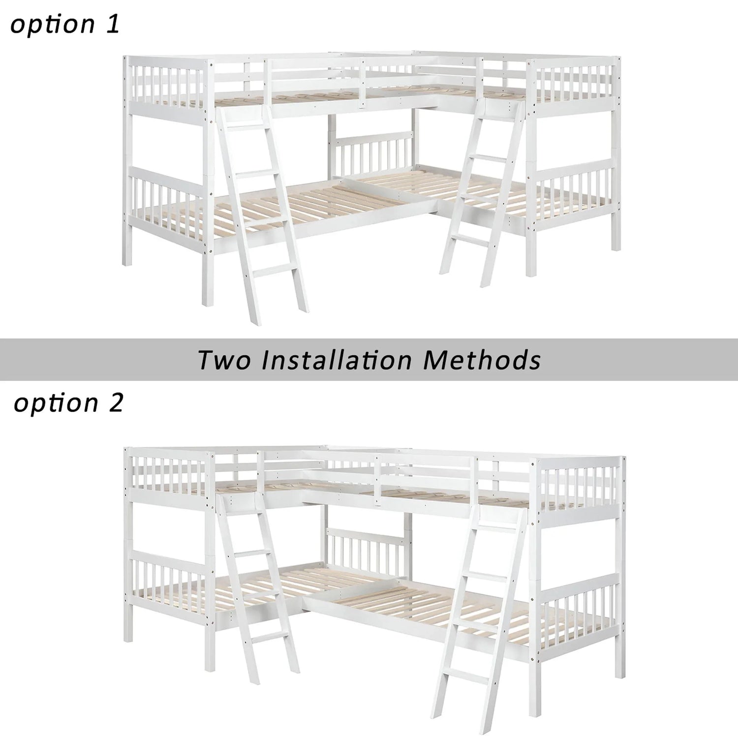 Versatility Galore: This L-shaped bunk bed can be divided into two separate L-shaped beds for even more convenience. Additionally, it offers two installation methods, depending on how you want to organize your space. No box spring needed.