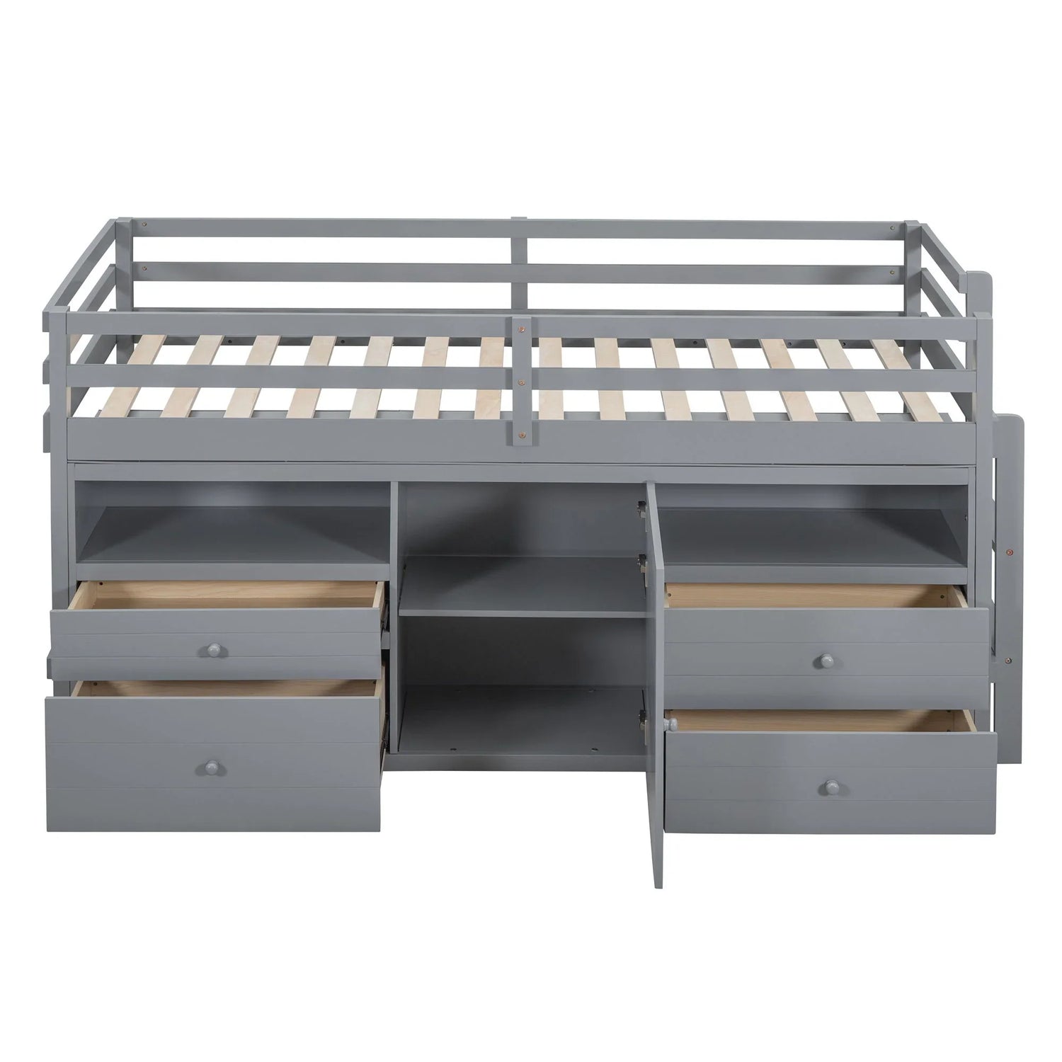 Loft Bed With 4 Drawers, Underneath Cabinet And Shelves