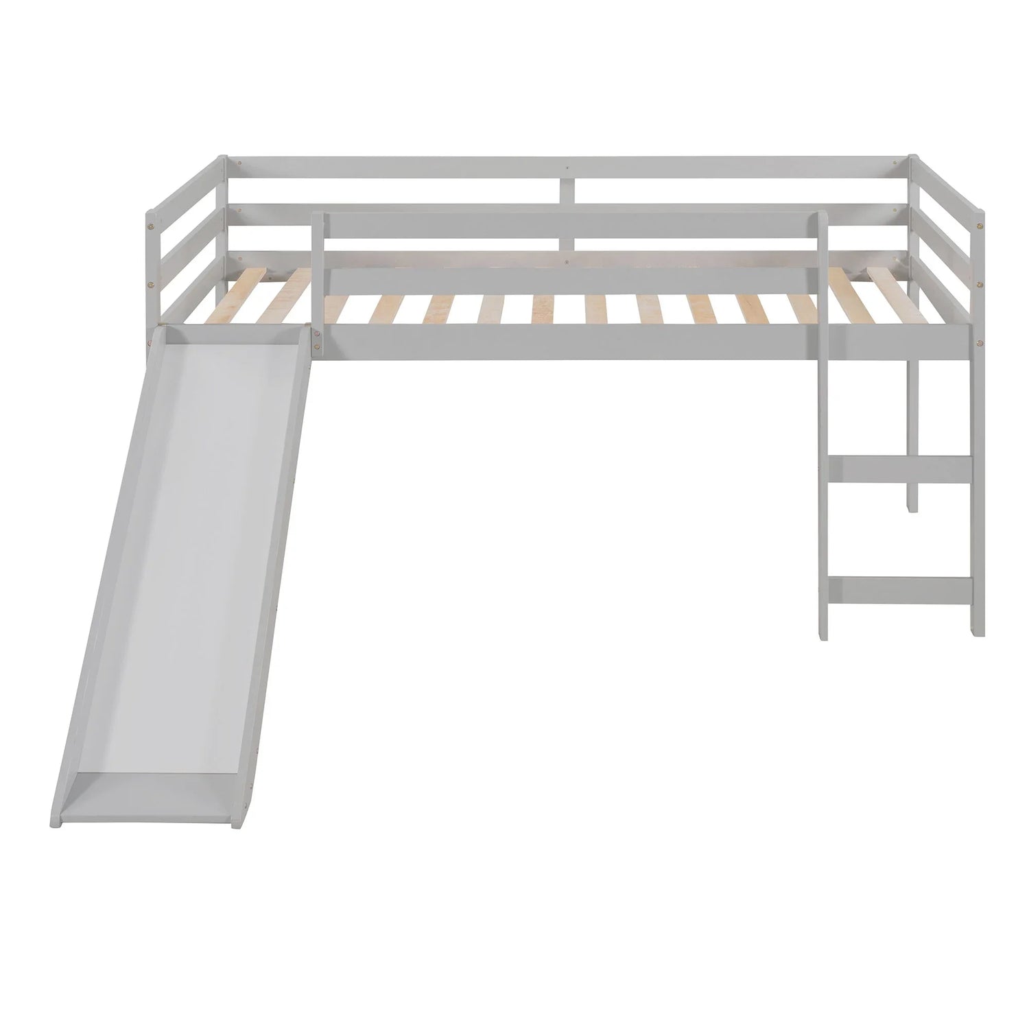 Twin Loft Bed With Slide, Multifunctional Design - Gray
