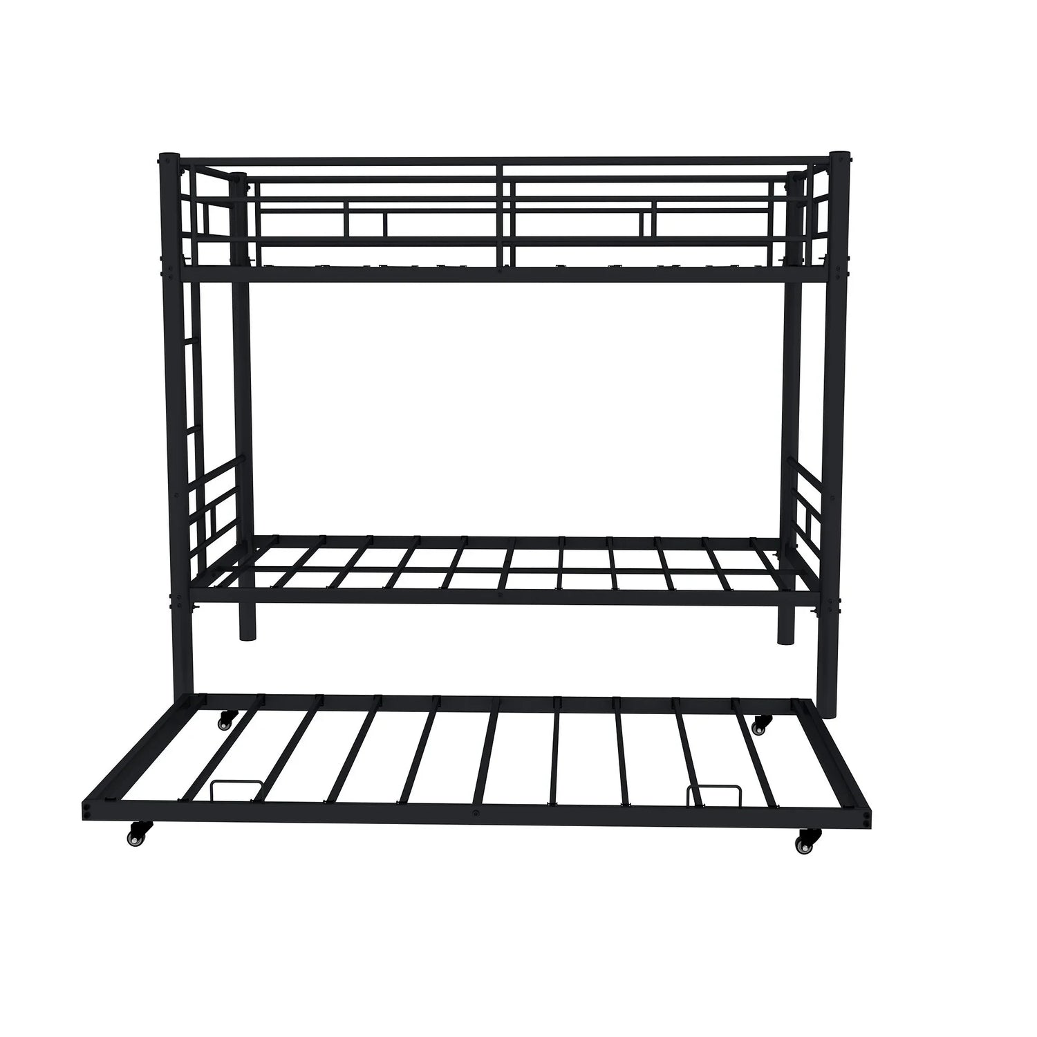 Twin Over Twin Bunk Bed With Noise Reduction, Safety Guardrail, No Box Spring Needed - Black
