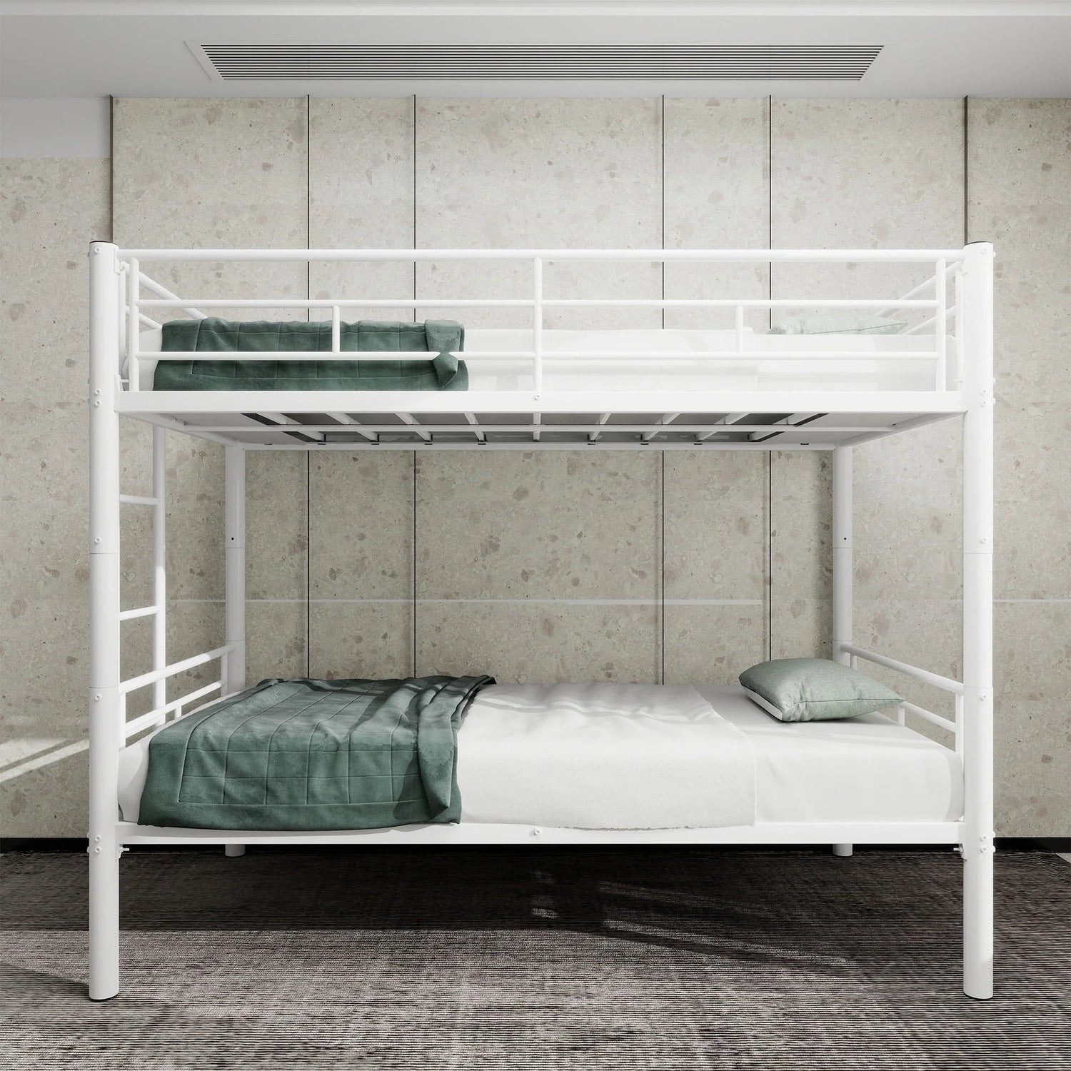 Twin Over Twin Metal Bunk Bed For Kids Boys Girls, Convertible Bedframe With Ladders & Guardrail - White