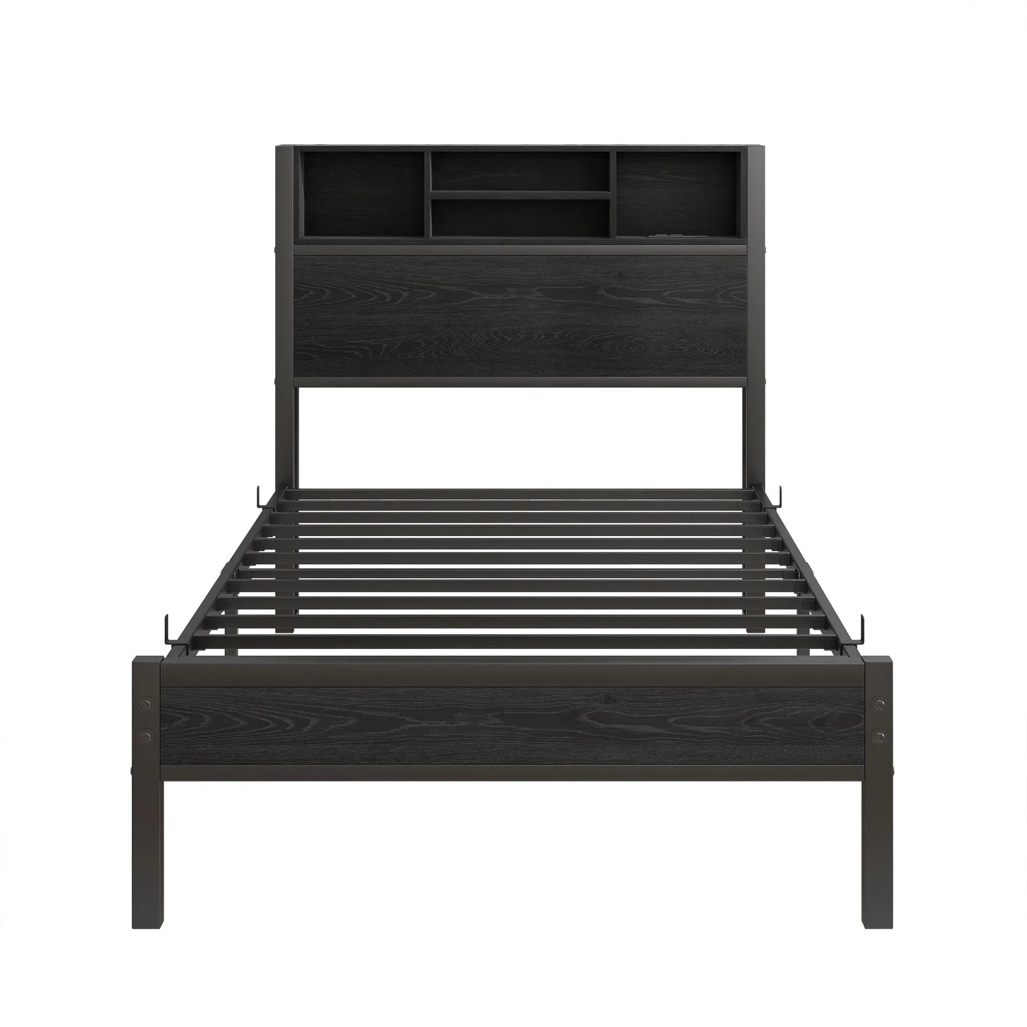 Twin Size Metal Platform Bed Frame With Storage Headboard And Charging Station - Black