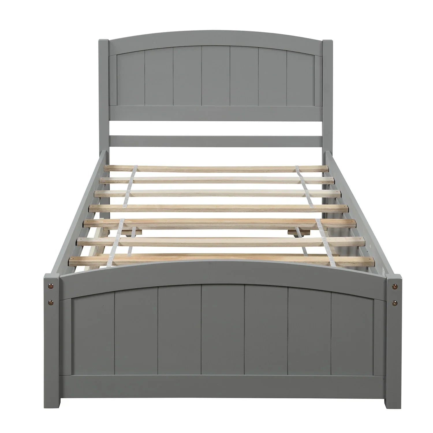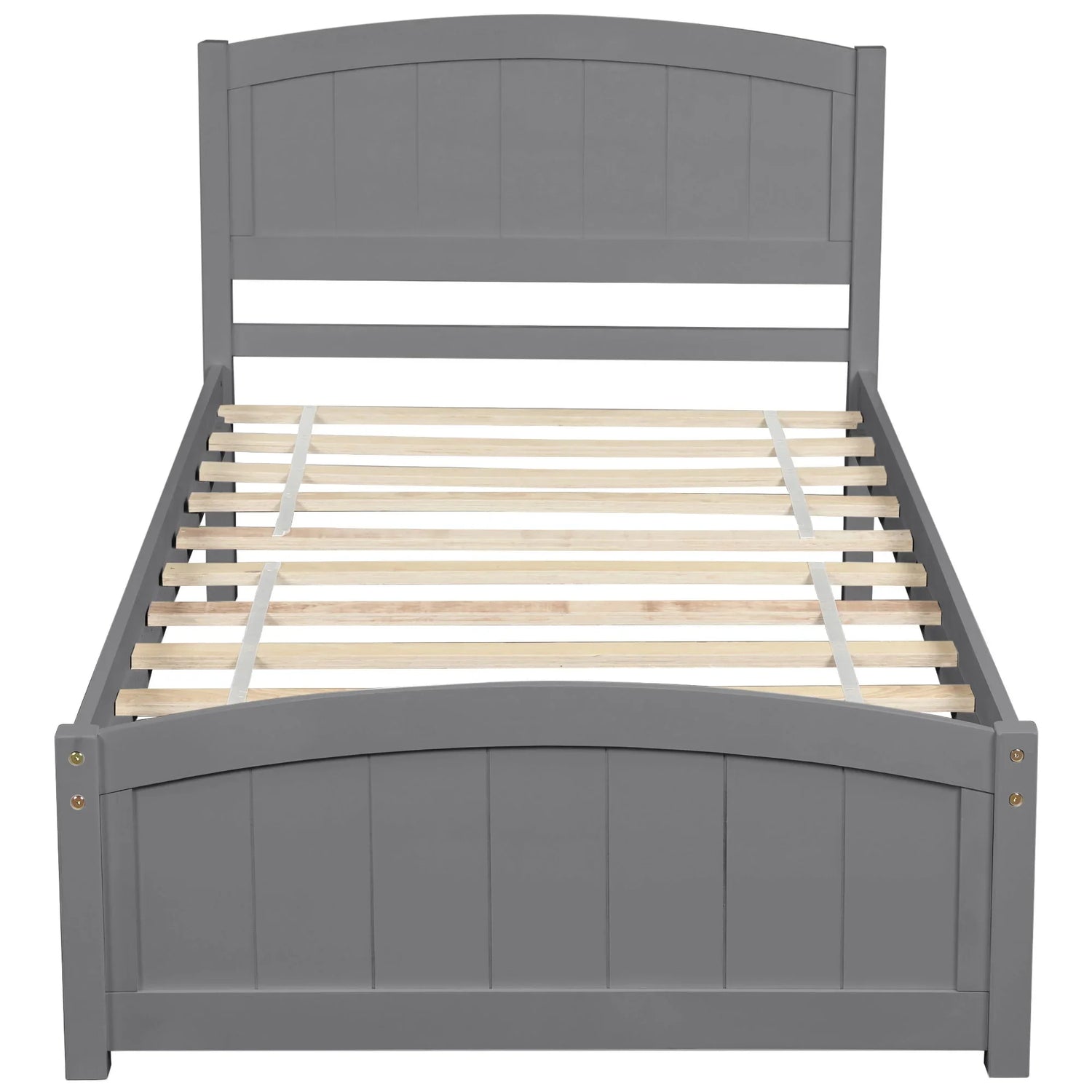 Twin Platform Bed With Headboard, Footboard And Slat Support - Gray