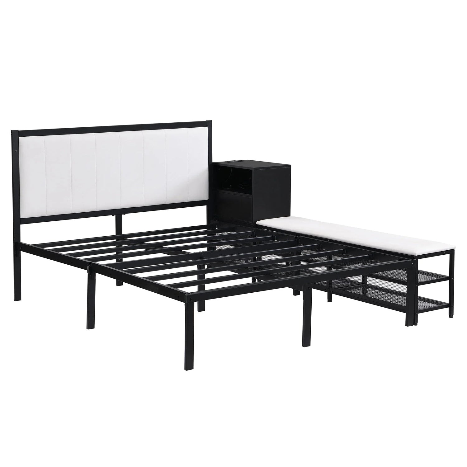 • Included items: Bed frame with headboard, two-tier shelving, storage cabinet (mattress and bedding not included).