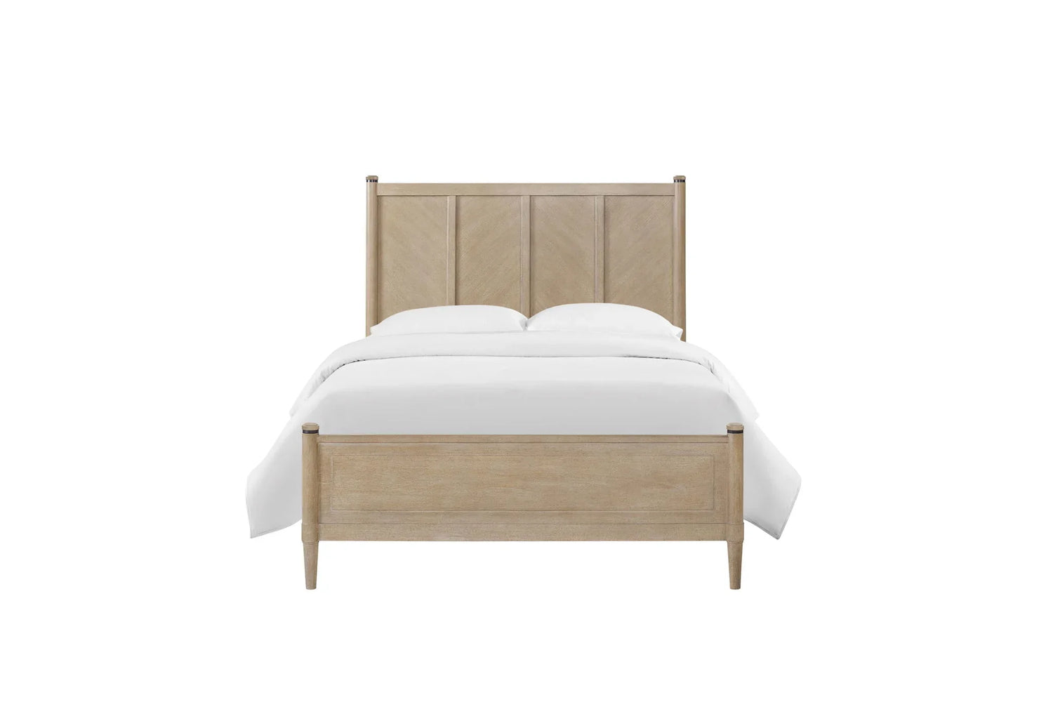 Pair the warm sand finish with crisp white linens and textured throws for a light, coastal feel, or layer in deep blues and leather accents for a richer, more grounded scheme. The low-post frame complements both low nightstands and slim-profile dressers—choose bedside pieces that maintain a balanced sightline with the headboard.