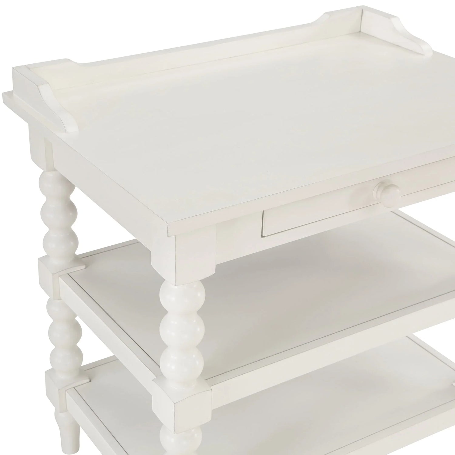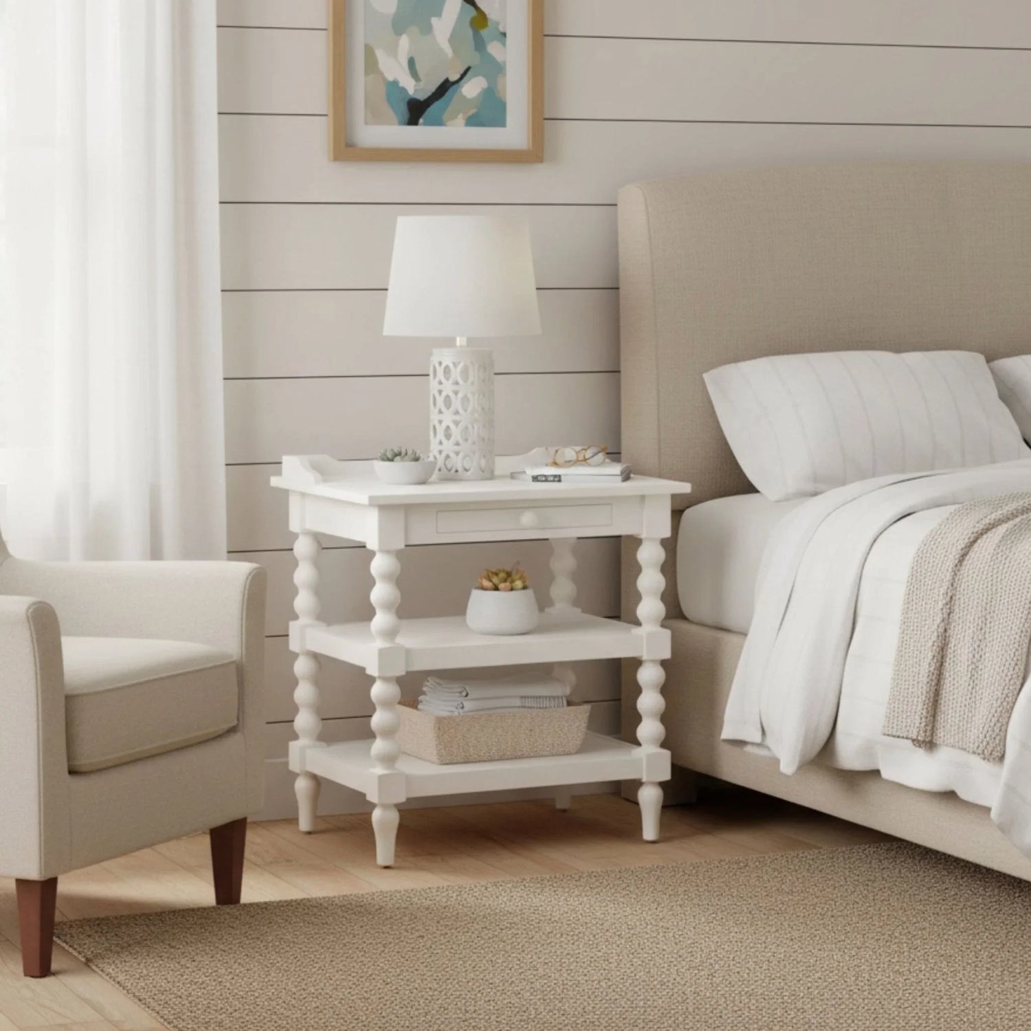 Aria - Nightstand With Styling, 2 Shelves, Pull Out Tray, Spool Turned Legs - Antique White