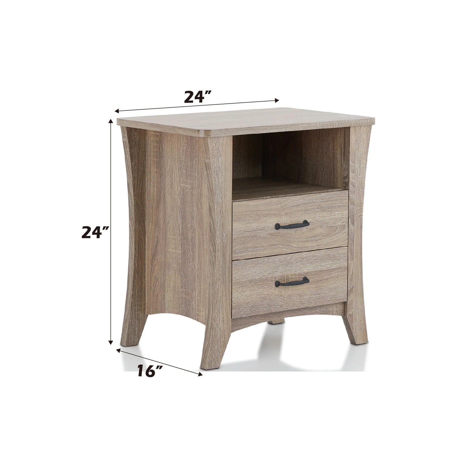 The Colt Accent Table is designed for anyone who wants a compact, functional nightstand with a softly modern look. It fits beside beds in small to mid-size bedrooms, guest rooms, or a cozy living area — offering the everyday convenience of an open shelf for bedside essentials and two smooth-glide drawers for tucked-away storage. The design reads contemporary-casual with a warm, weathered wood appearance that pairs easily with neutral or mixed-material bedroom palettes.