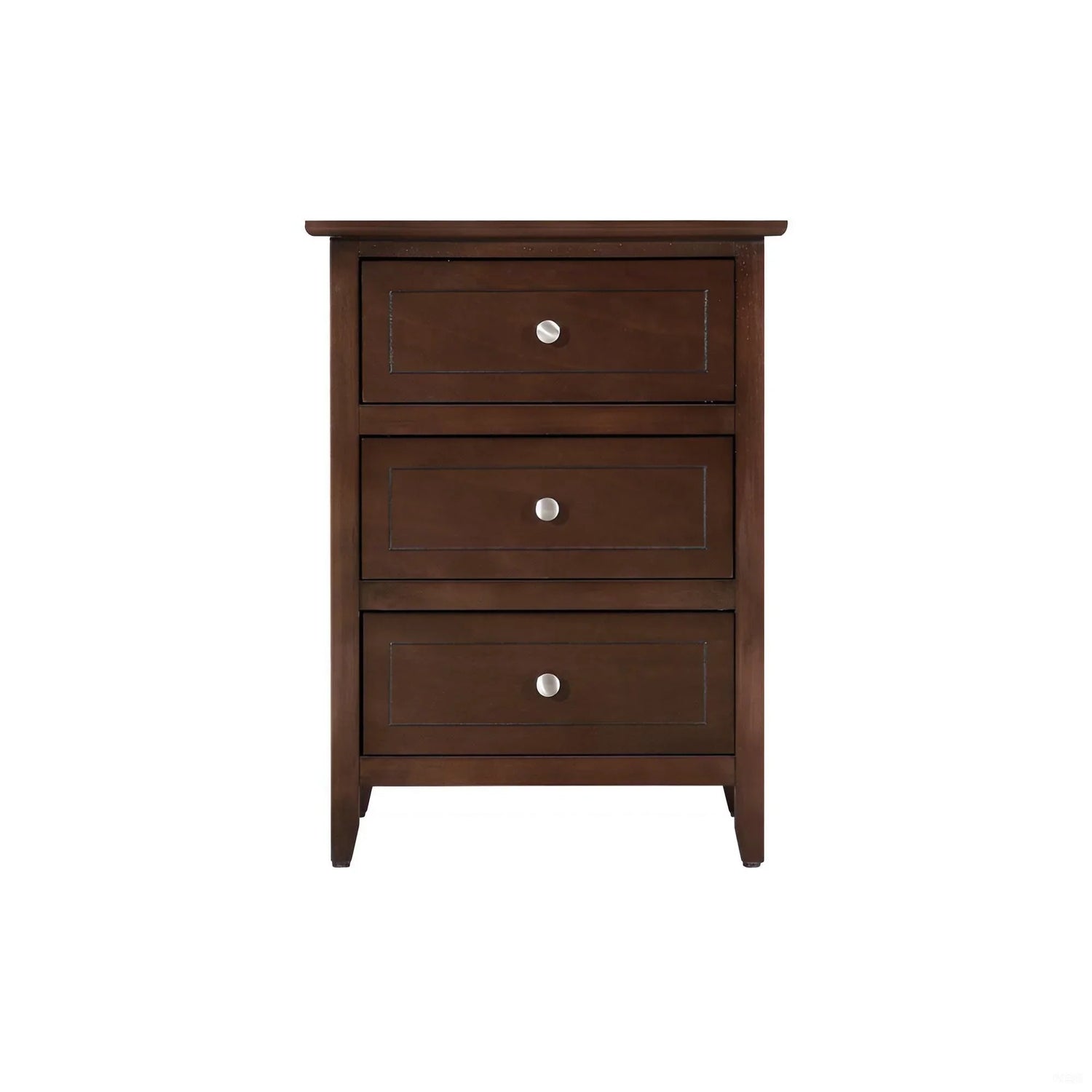 Built with real wood veneers and classic joinery, this nightstand balances approachable style with lasting construction. Each drawer is dovetail-joined for durable everyday use and accented with round nickel hardware for a subtle metallic contrast. It arrives fully assembled so you can place it in your room and start using it immediately.