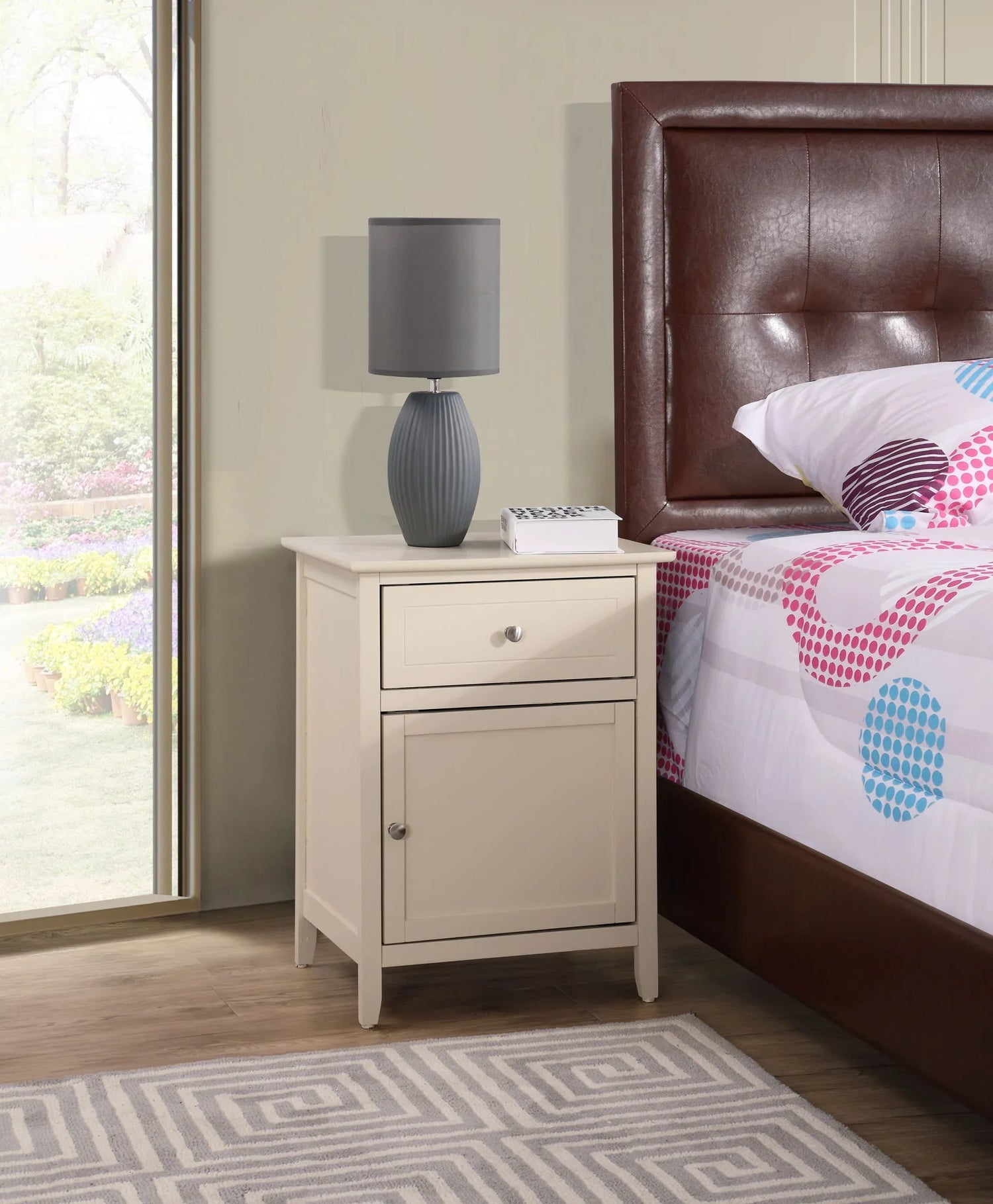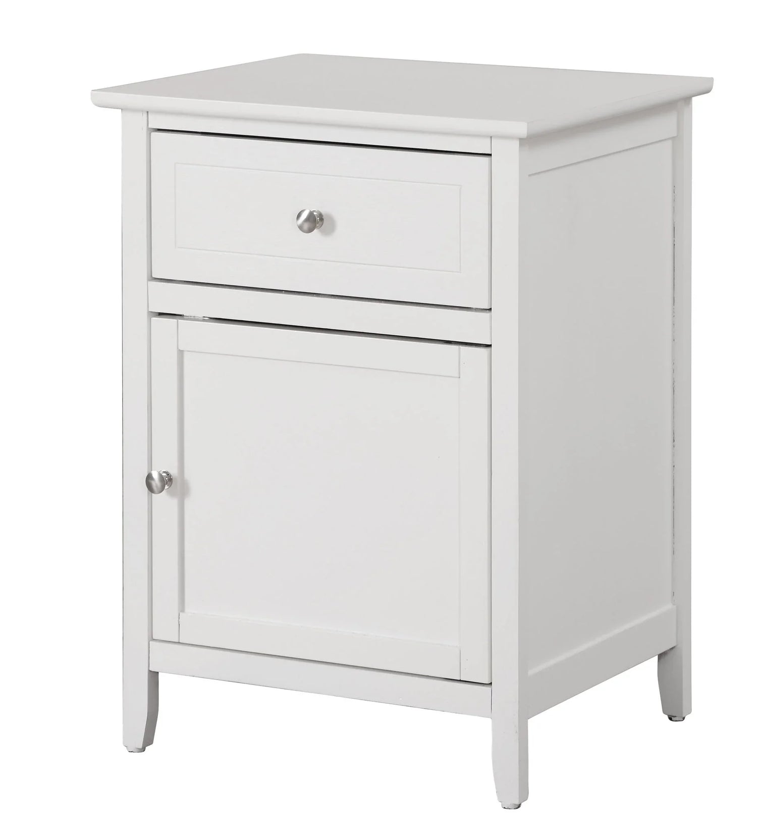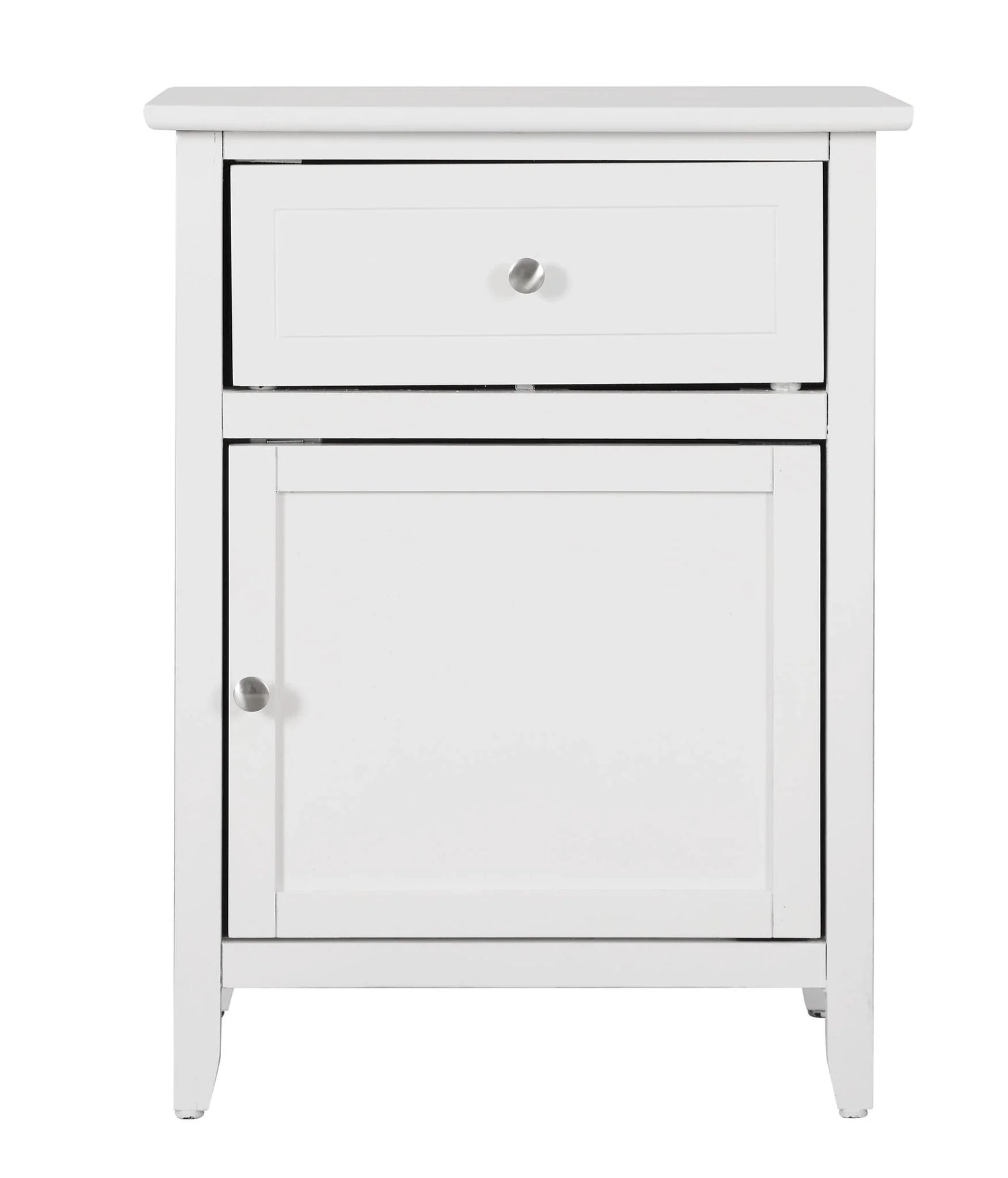 Perfect for anyone who wants a bright, practical bedside solution, the Izzy 1 Drawer / 1 Door Nightstand fits cleanly beside a bed or in a small guest room. Its compact footprint and classic silhouette make it an easy match for contemporary, coastal, or modern farmhouse interiors—use it as a bedside table, a lamp stand in a reading nook, or a catch‑all in an entryway.