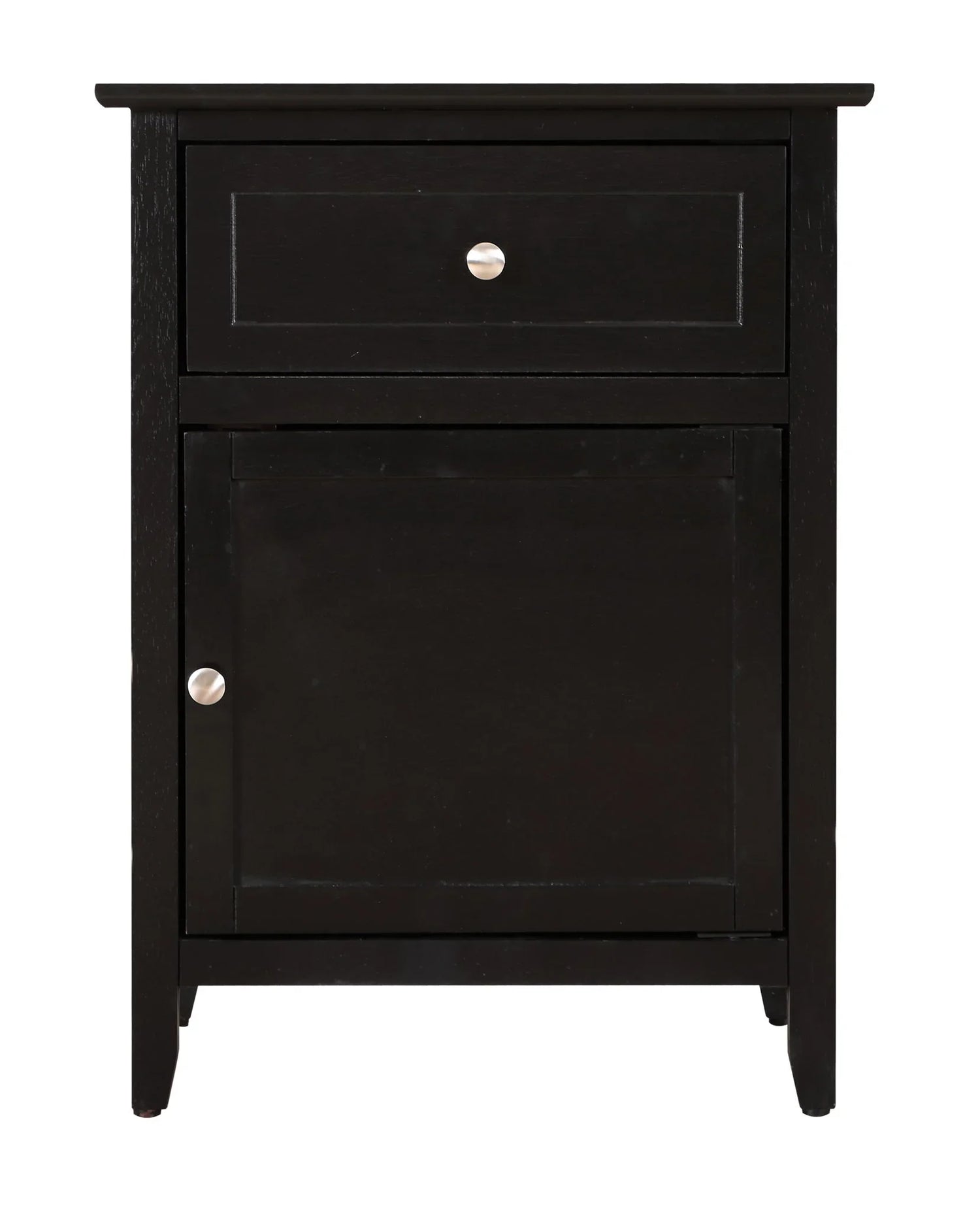 - Included: Nightstand with drawer and door; mounting/tip‑safety hardware not specified (see safety note).