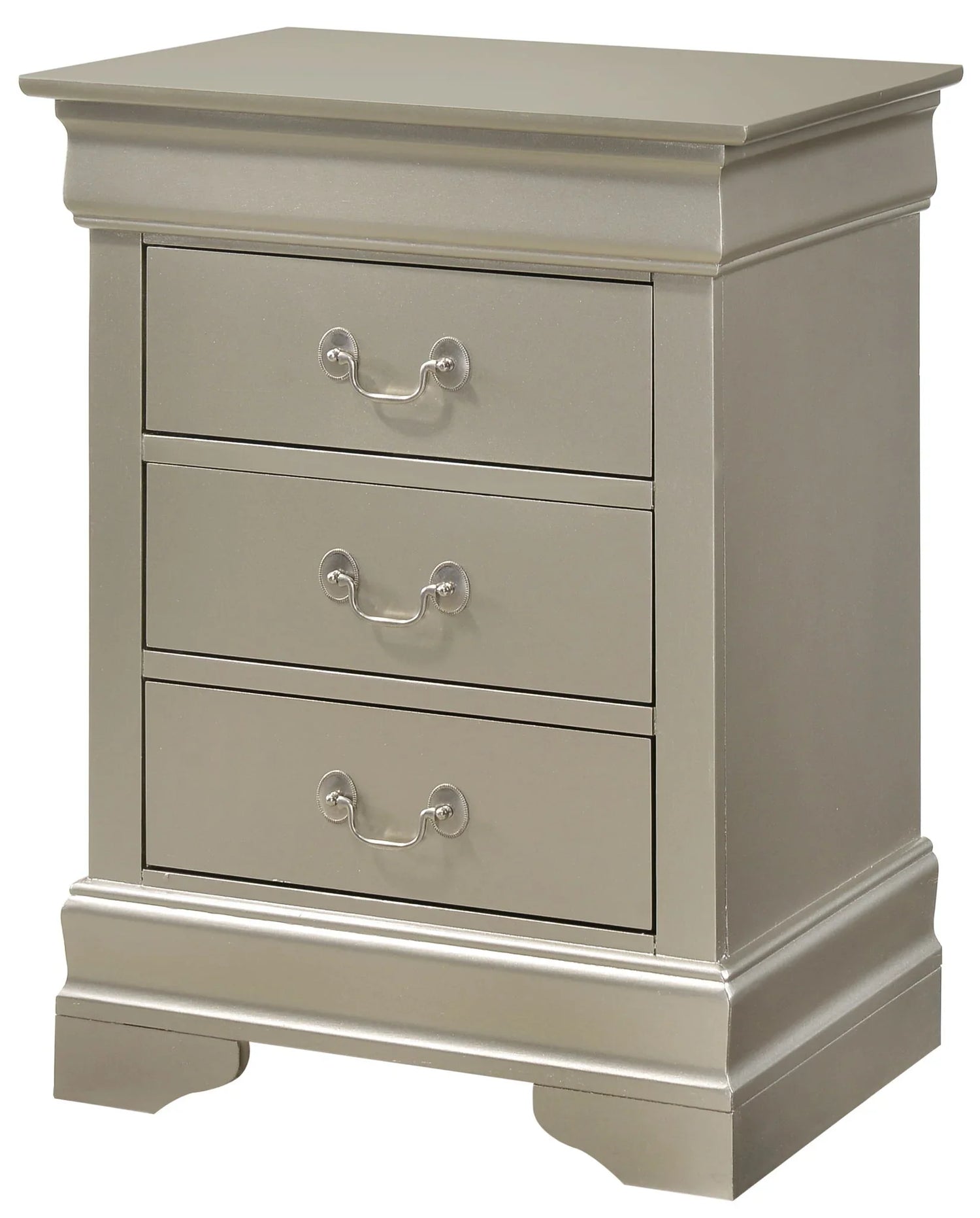 Louis Phillipe - 3 Drawer Nightstand - Silver Champagne