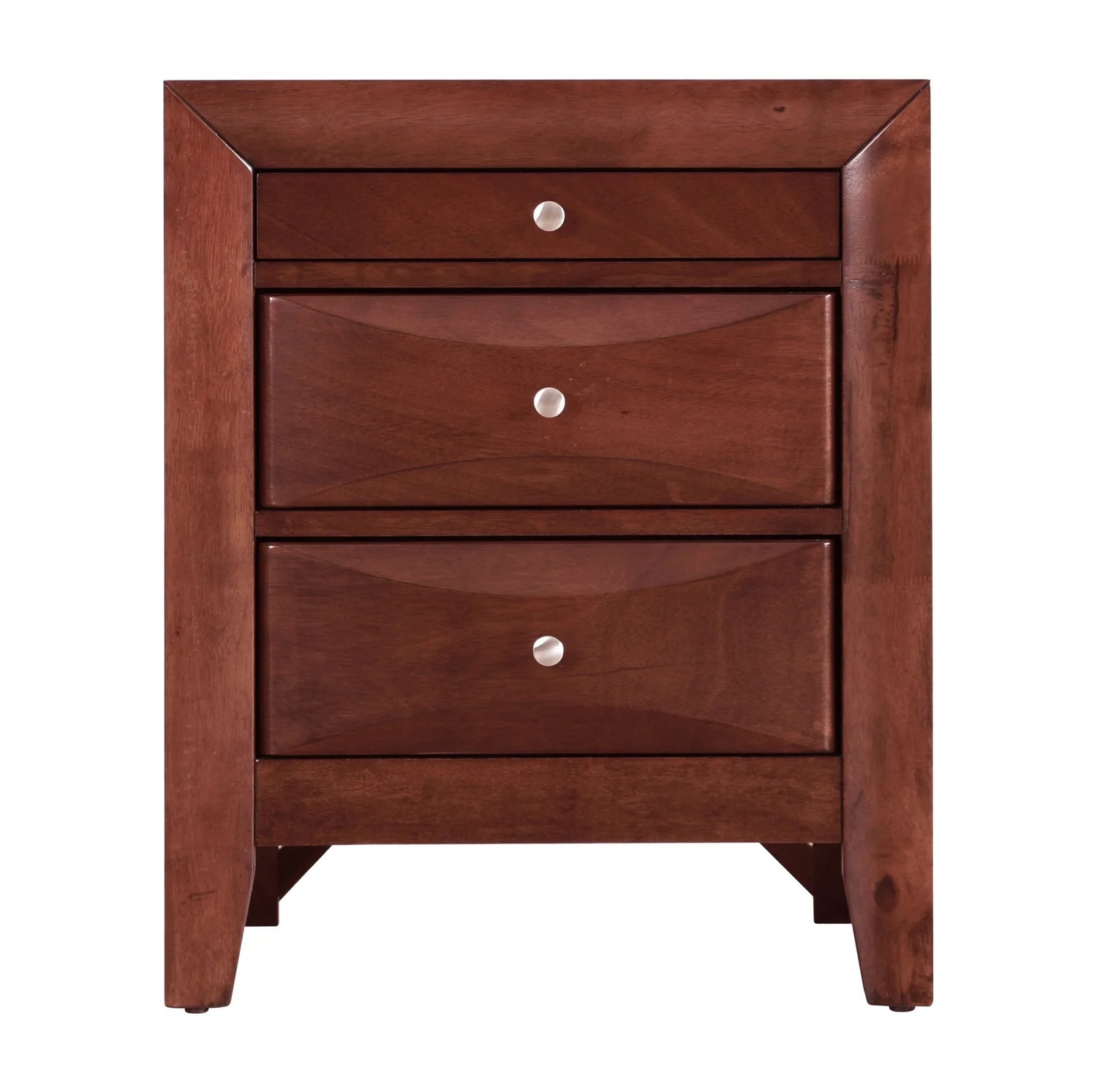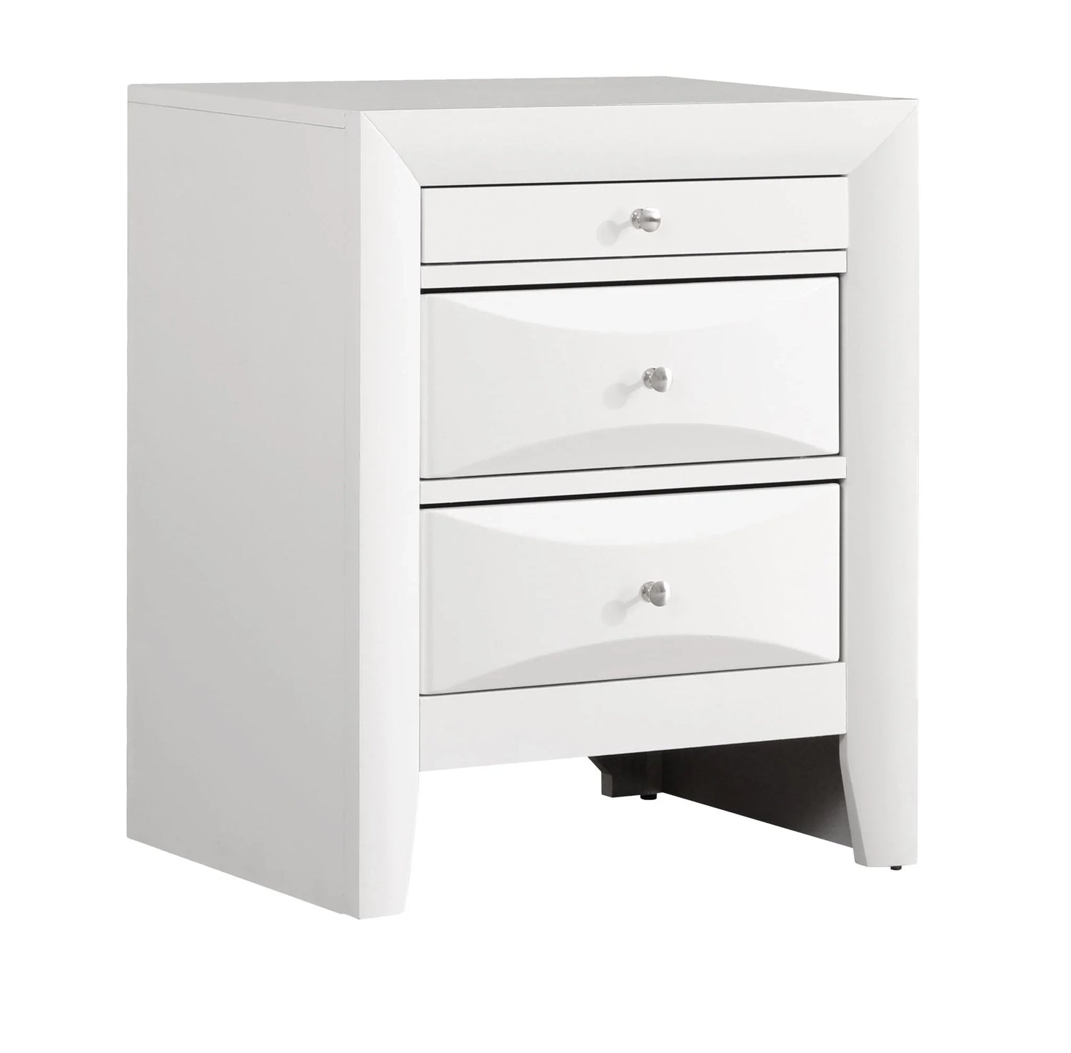 The Marilla Nightstand is designed for modern bedrooms that need a clean, sculpted bedside piece with practical storage. Ideal for sleepers and readers who want a streamlined surface for a lamp and easy-access drawers for nightly essentials, its beveled, curved drawer fronts and simple round knobs create a contemporary silhouette that pairs well with modern, transitional, or minimalist décor.
