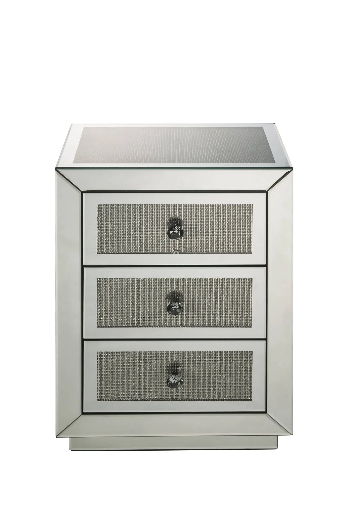 Noralie - Mirrored Nightstand / Faux Dimaonds - Silver
