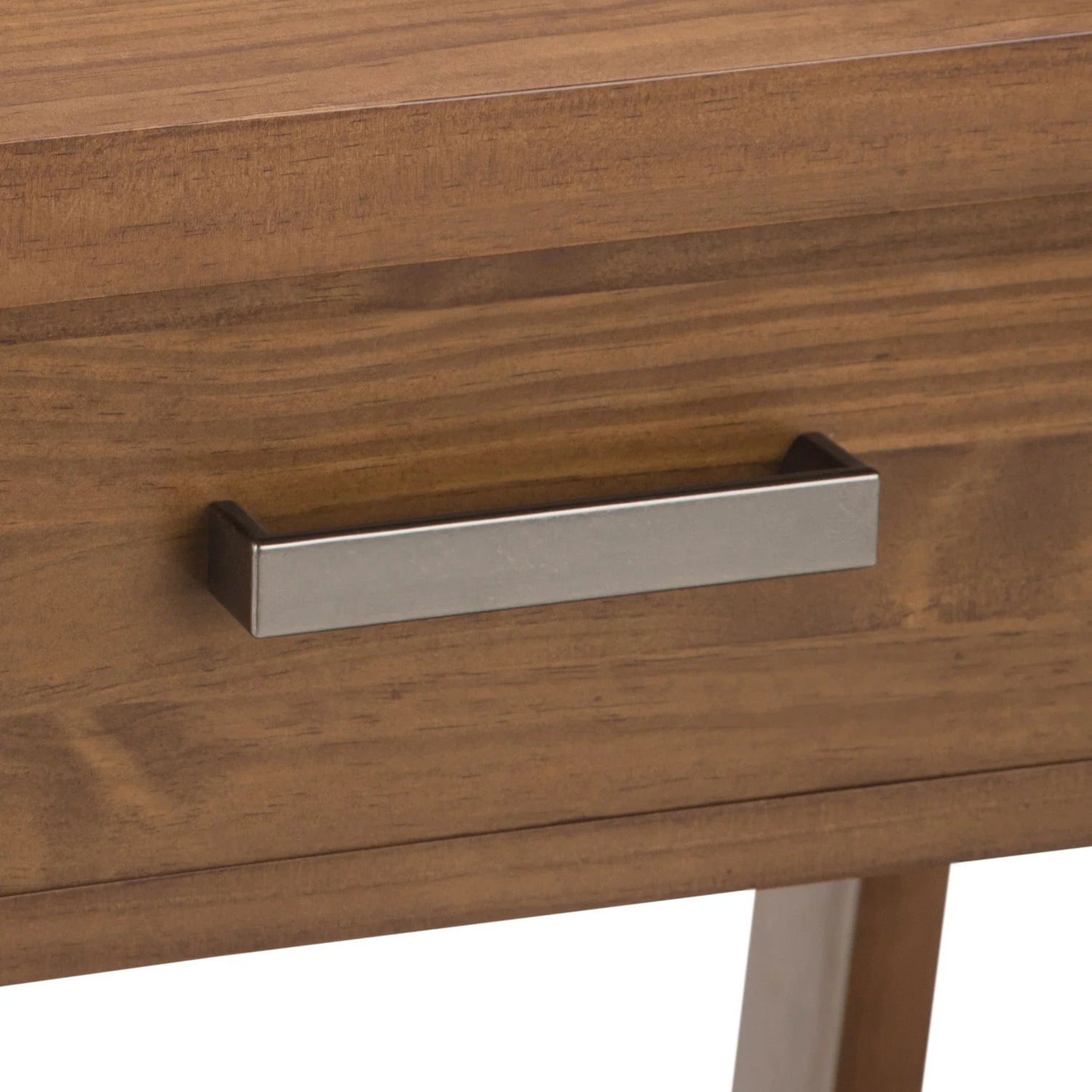 This bedside table celebrates solid-wood construction and handcrafted finishing. Because this is a natural material, color and grain variation are to be expected and celebrated. For safe use, avoid overloading the drawer or tabletop with excessive weight and consider using an anti-tip restraint if placing the piece in a home with small children or on uneven floors.
