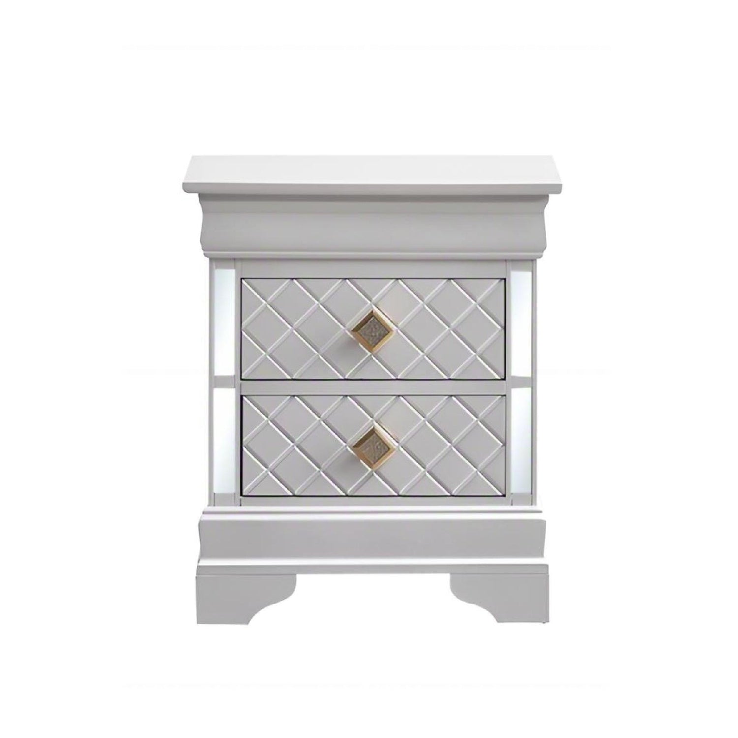 Verona - Nightstand With Gold Handles And Faux Crystal Accents, 2 Drawer Storage - White