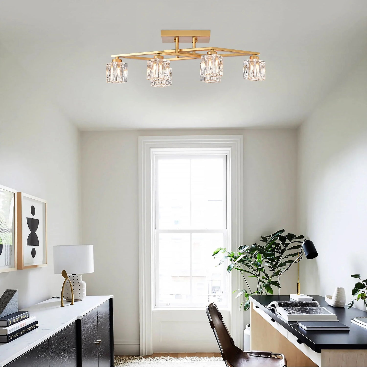 Perfect for someone who wants a modern, polished focal point for a dining area, entryway, or living space, this 6-light crystal ceiling fixture pairs sculptural geometry with clear crystal accents for a refined, contemporary look. It reads as both decorative and practical — brightening task areas while adding a luxe, lantern‑inspired silhouette that complements high ceilings and open ceilings alike.