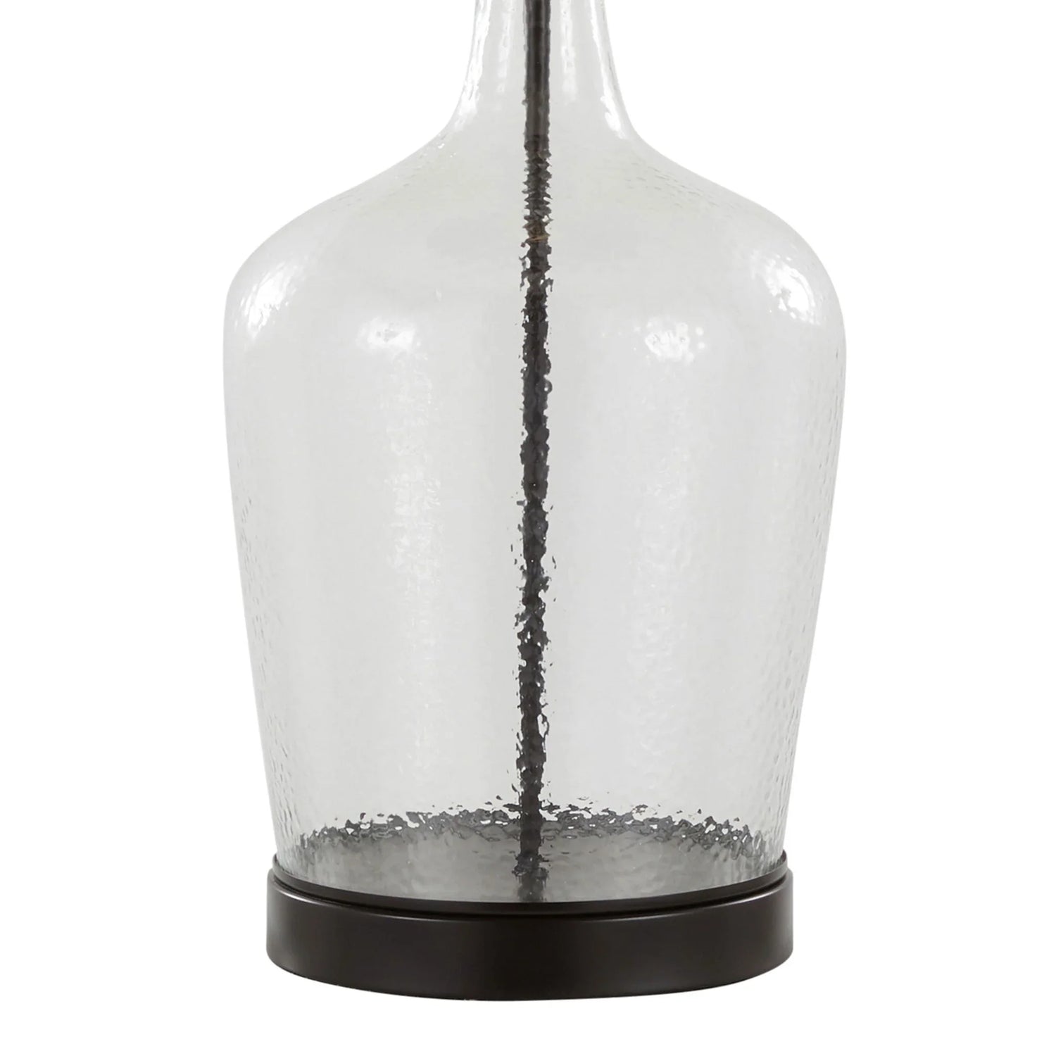 The Botella table lamp set (2) is for anyone who wants modern, livable lighting that feels both elevated and easygoing. These lamps pair a clear, dimpled glass body with oil-bronze metal accents and a natural linen drum shade—perfect for living rooms, bedside tables, or a study where soft, ambient light matters as much as style.