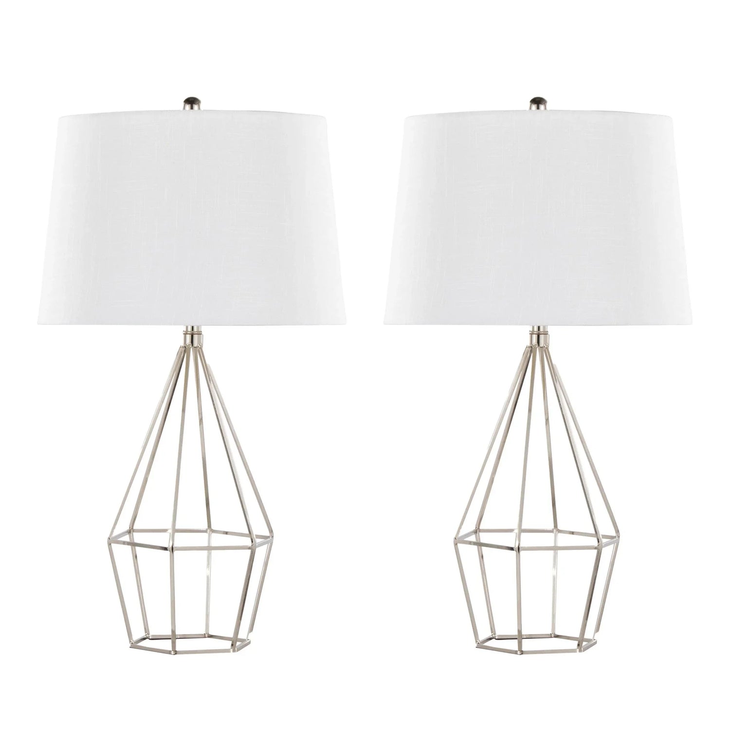 Designed as a pairing that simply elevates a room, each lamp combines a polished nickel metal base with a crisp white fabric shade for a balanced contrast of shine and texture. Lightweight assembly is required, making these lamps a quick way to refresh bedroom, living room, or home office styling with a restrained, modern aesthetic.